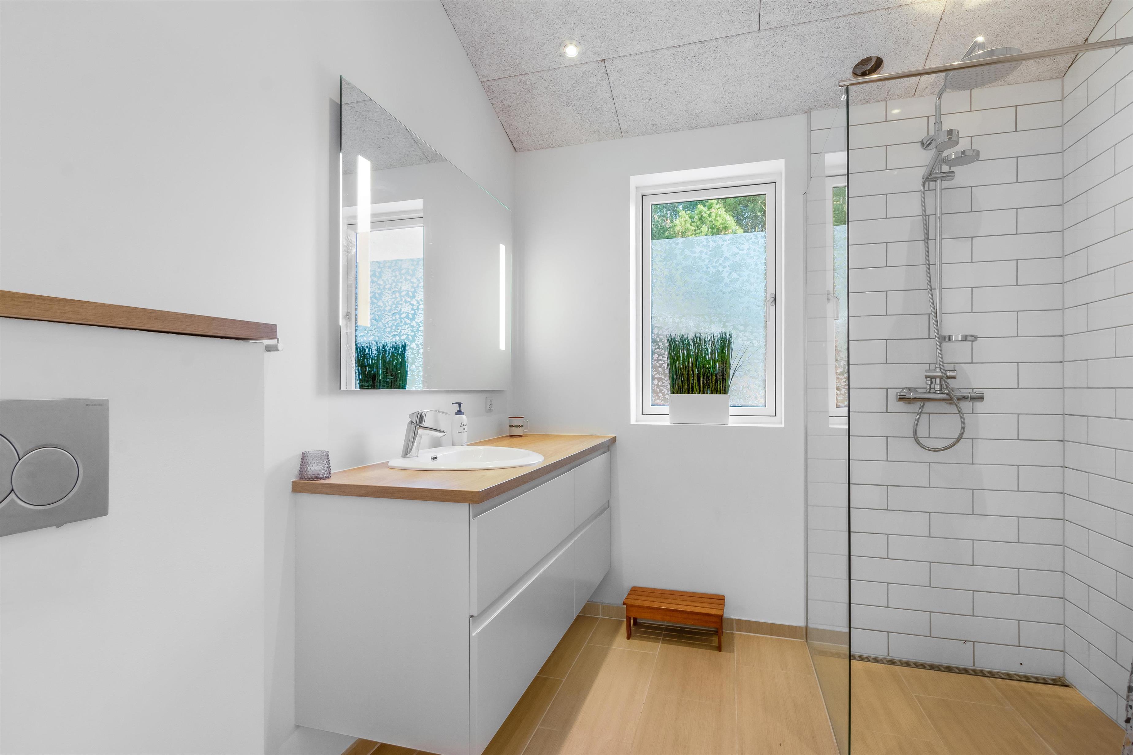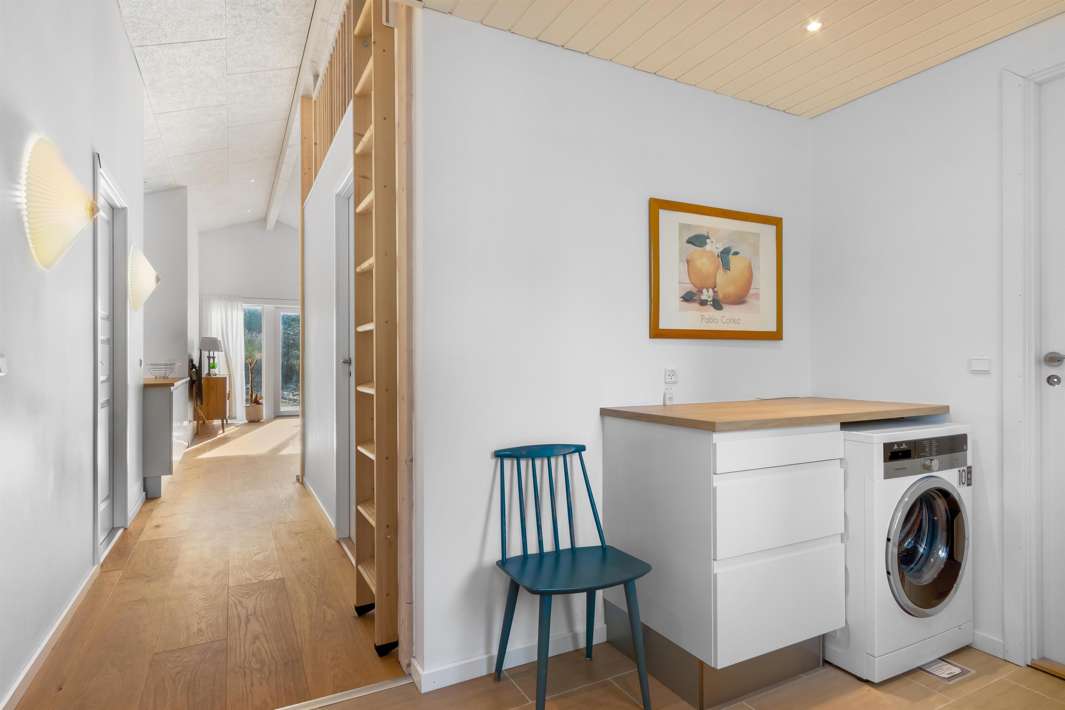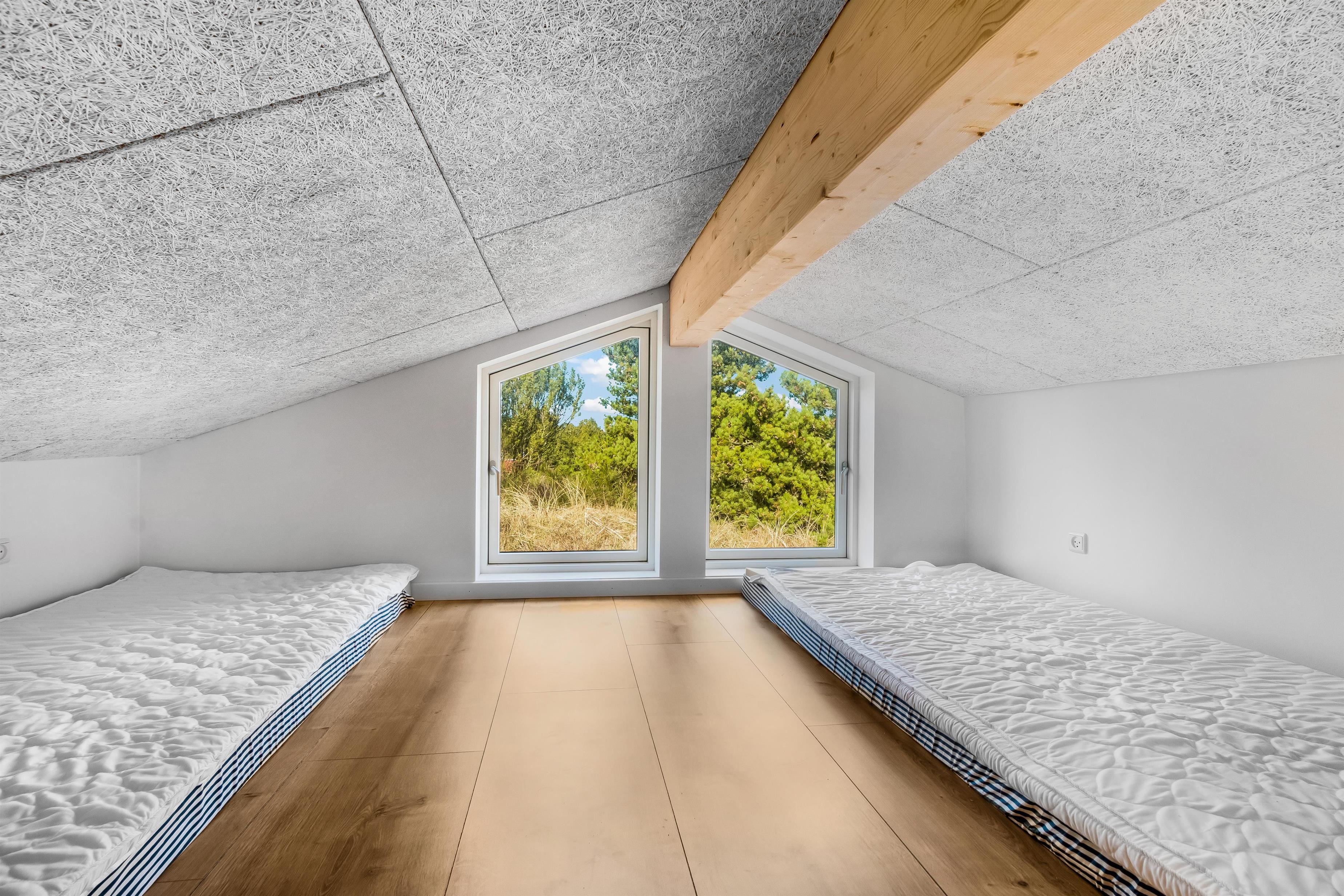 Sommerhuset er bygget i 2022/2023 og er dermed helt nyt. Der er intet mindre end 3 soverum med en dobbeltseng i hver. Dertil kan man sove på den hyggelige hems, hvorfra man kan følge med i køkken/alrummet/stue hyggelige leben. På hemsen er der tre enkeltmadrasser og et dejligt vindue ud mod selve Raabukvej. I stueplan er køkken/alrum/stue virkelig åbent og lækkert, og her er et skønt lysindfald og mulighed for at tilgå sommerhusets store træterrasse, hvor der er masser af mulighed for at finde en plet i solen. Der er et praktisk, mindre bryggers og et enkelt badeværelse. Ferieboligen er røgfri og ungdomsgrupper er ikke tilladt. Husk at bestille evt. linnedpakker ved booking og undgå ekstra administrationsgebyrer.