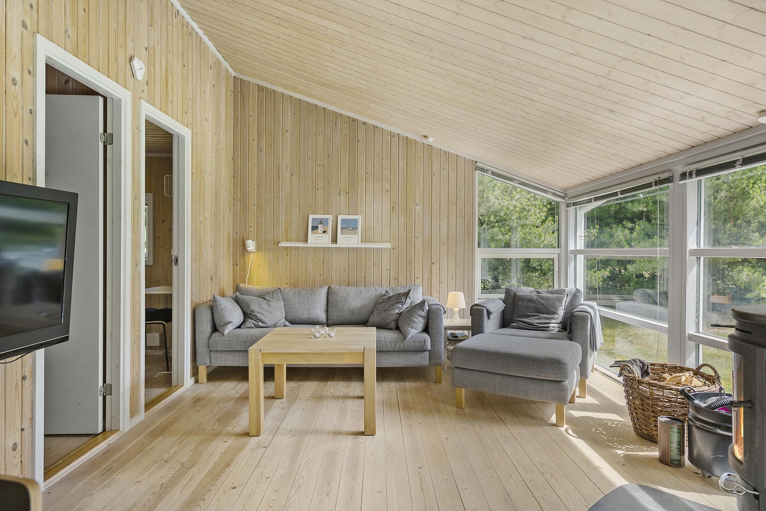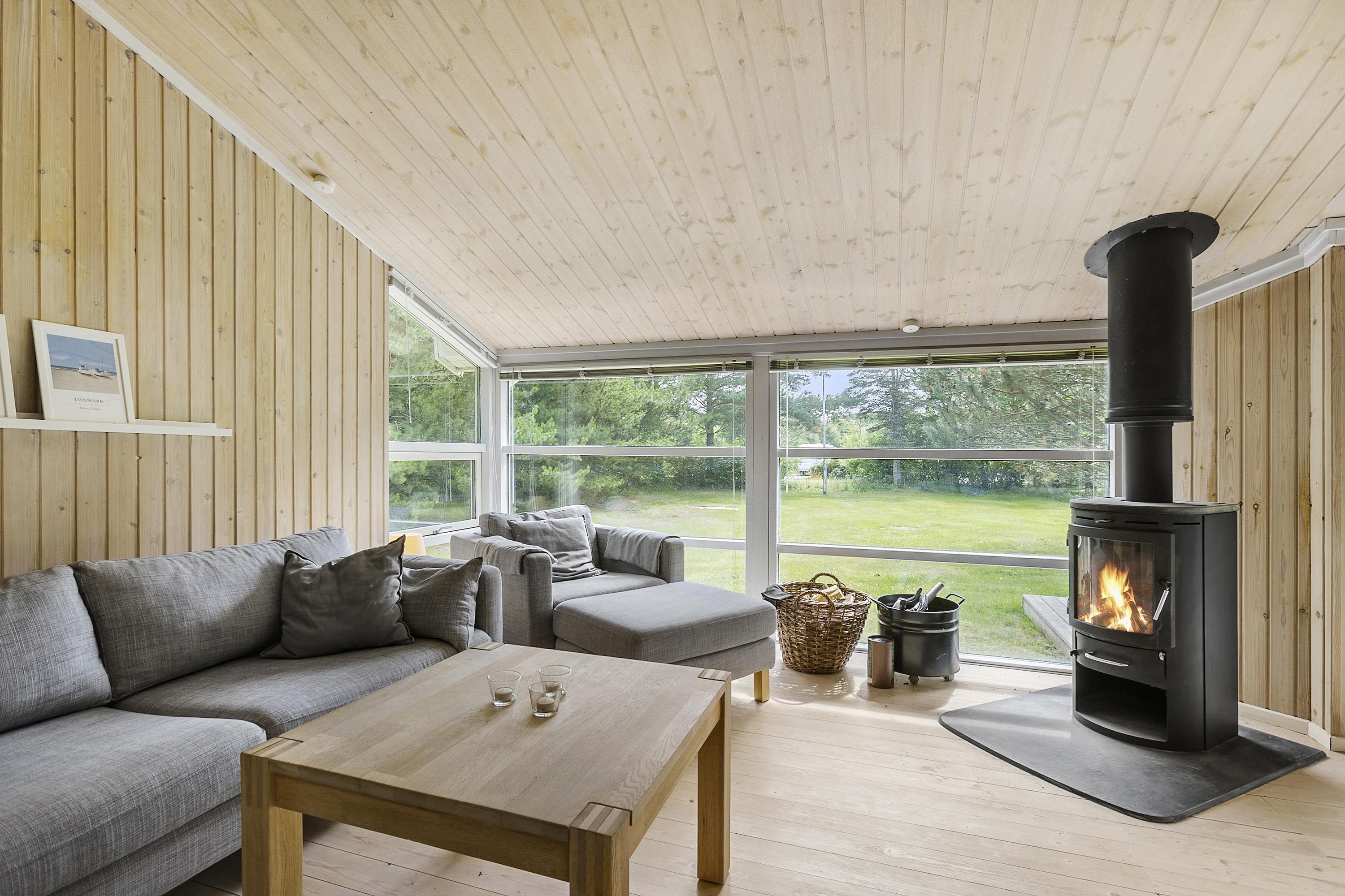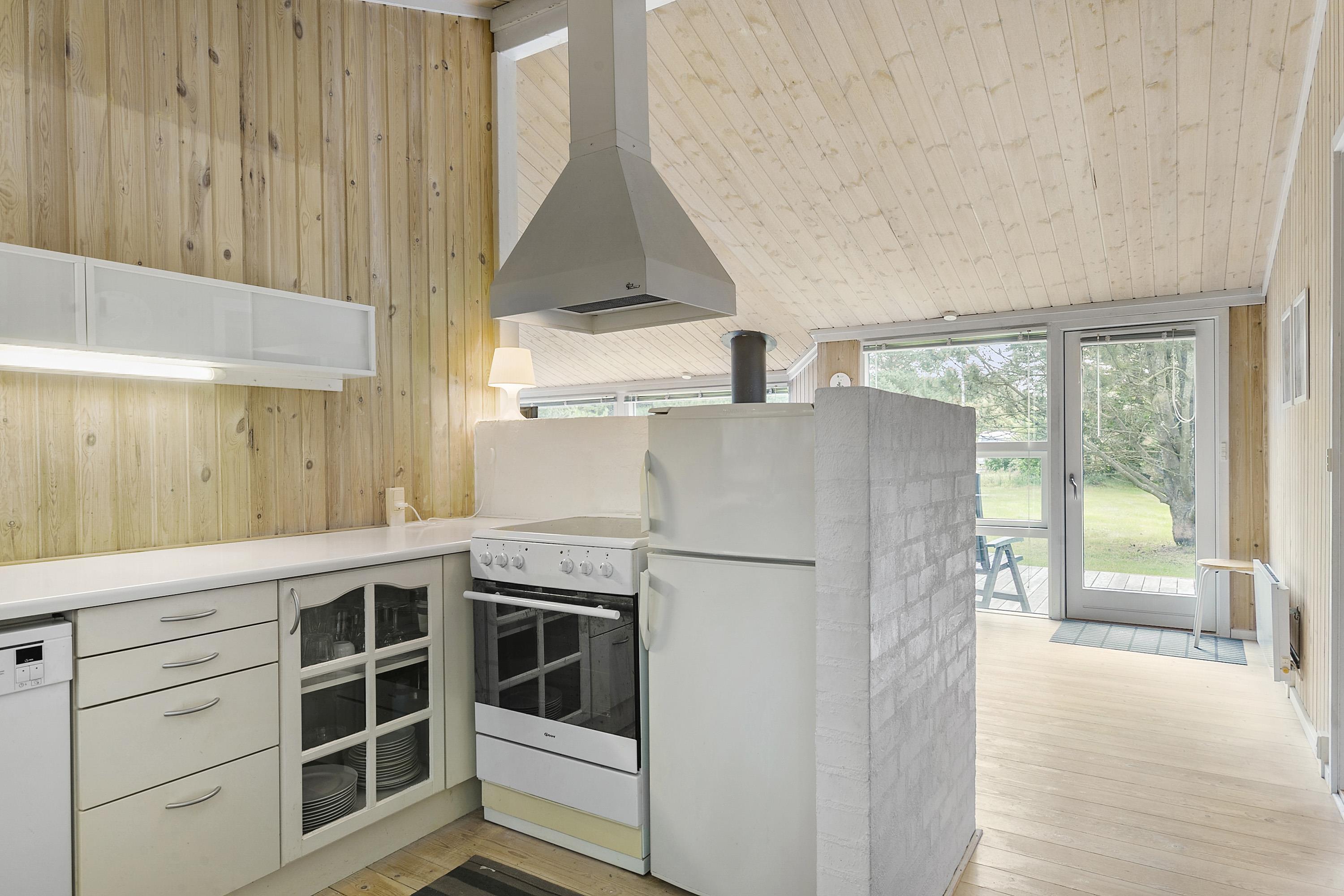 Dette sommerhus er et klassisk, dansk sommerhus med et skønt køkken/alrum og stue i åben planløsning. Her kan du slænge dig foran brændeovnen eller spille kort ved spisebordet, mens maden simrer i køkkenet. Fra det hyggelige køkken/alrum er der udgang til husets dejlige terrasse og store have, og udenfor vinduerne er der smuk natur til alle sider. Huset har i alt tre soverum og et stort badeværelse med sauna. I det ene soverum er der hele tre sovepladser fordelt på en køjeseng og en hems - et rum, der virkelig indbyder til sommerhus-råhygge. De to andre soverum har dobbeltsenge og huset har plads til 6 personer.