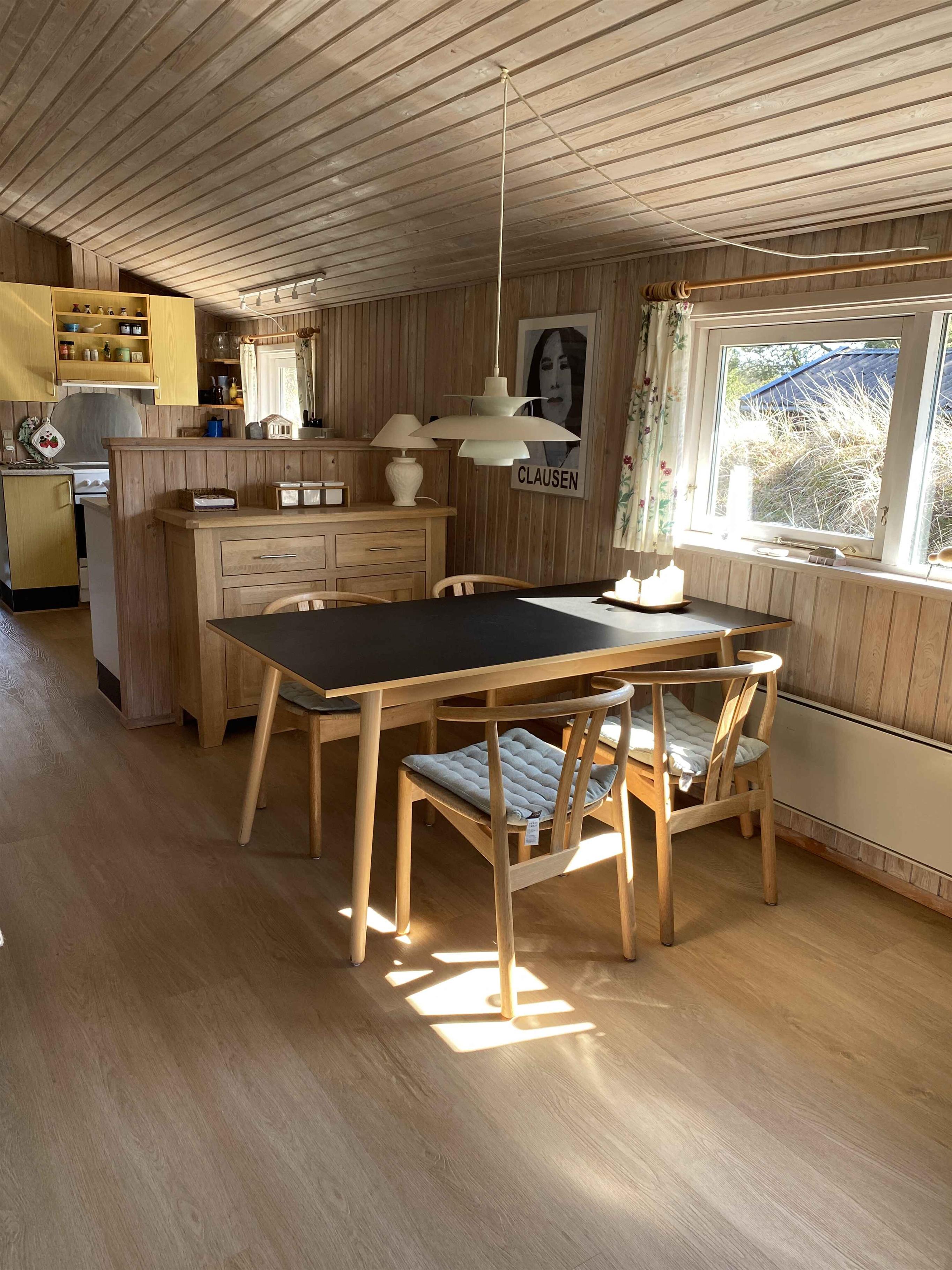 Saltum Strand I en smuk og enestående natur ved Vesterhavet ligger dette attraktive og hyggelige feriehus. Huset er beliggende i kort afstand til Danmarks bedste badestrand (700m). Området byder på et hav af aktiviteter for hele familien. Her findes bowlingbaner, legeland for børn, subtropiske badelande, golfbaner, fiskeparker, ridecentre, sportshaller m.m. Besøg også Fårup Aquapark & Sommerland, en af Danmarks største ferieparker. Fårup Sommerland og Blokhus er beliggende i cykelafstand fra feriehuset. Den ca. 1600 m2 store solrige, delvist beplantede og helt ugenerede klitgrund ligger ikke langt fra skov og strand. Der er ligeledes fredede områder, som indbyder til traveture med hele familien. Efter en dejlig naturoplevelse gør det godt med en forfriskende dukkert i Vesterhavet. Dette lyse og indbydende feriehus er pænt møbleret. I forbindelse med stuen med brændeovn, er der udgang til den store overdækkede sydvestvendte terrasse. Også sydøst terrassen er delvist overdækket. Både køkkenafdelingen og badeværelse er lyst og funktionelt indrettet. Der er dyner og hovedpuder i huset. Lejer skal selv medbringe betræk til dyner og hovedpuder, lagner, håndklæder og viskestykker. Der foreligger toiletpapir, køkkenrulle og engangsklude. Gæsterne opfordres til løbende at fylde op af disse. Ny terrasse anlagt i 2022. Nyt gulv lagt i 2023. Obs, udlejes ikke til erhversmæssigt brug.
