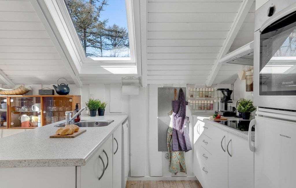 Der er lagt op til nogle vidunderlige dage på Samsø! Her kan I få jeres base i dette indbydende feriehus, som har en vidunderlig placering på en skovklædt grund i naturskønne omgivelser. Pladsen er godt udnyttet i det lille hus, som er klassisk og hyggeligt med enkle stilvalg. I kan se frem til nogle gode fællesrum, hvor lyset falder ind fra de store vinduesfronter og gennem taget. Der er derfor også en dejlig udsigt til den grønne have, mens I nyder dagens måltider.