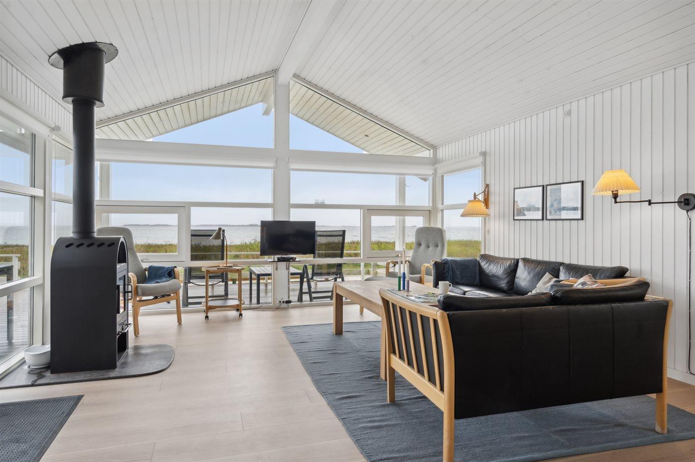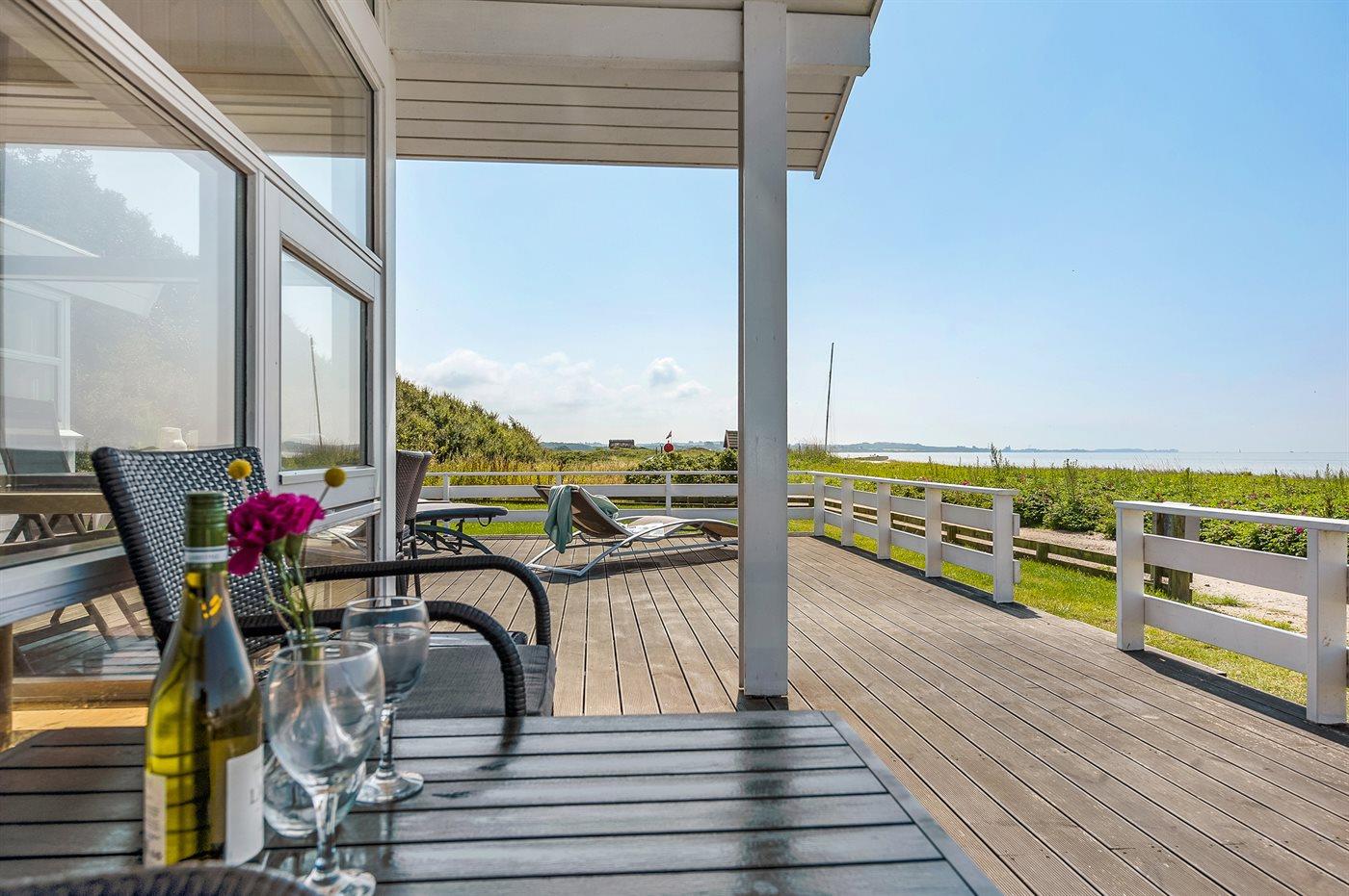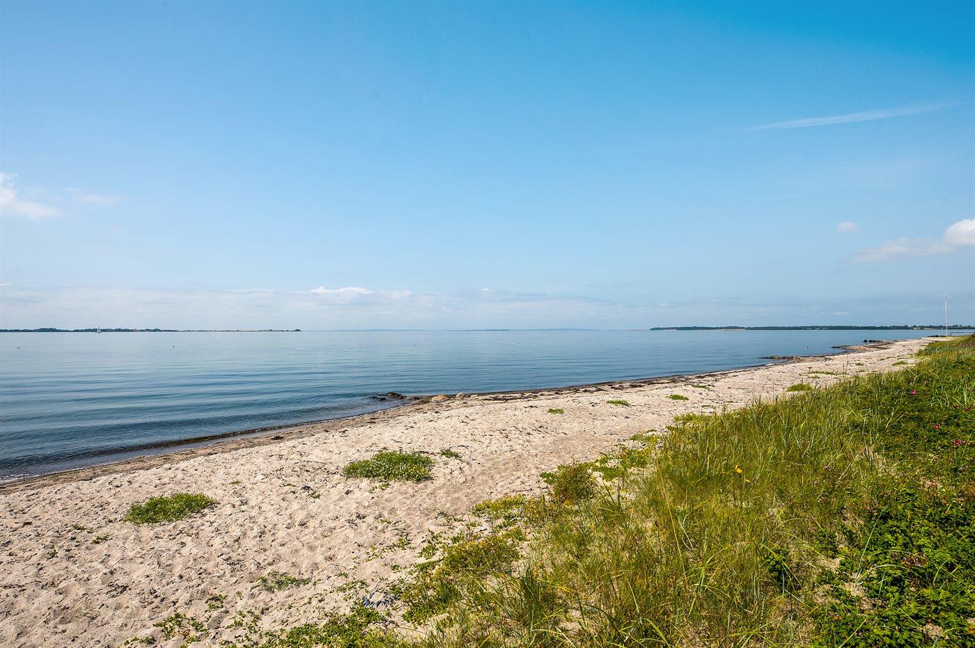 Skønt sommerhus ved børnevenlig sandstrand med panoramaudsigt over Lillebælt og adgang til natur og vandsport.