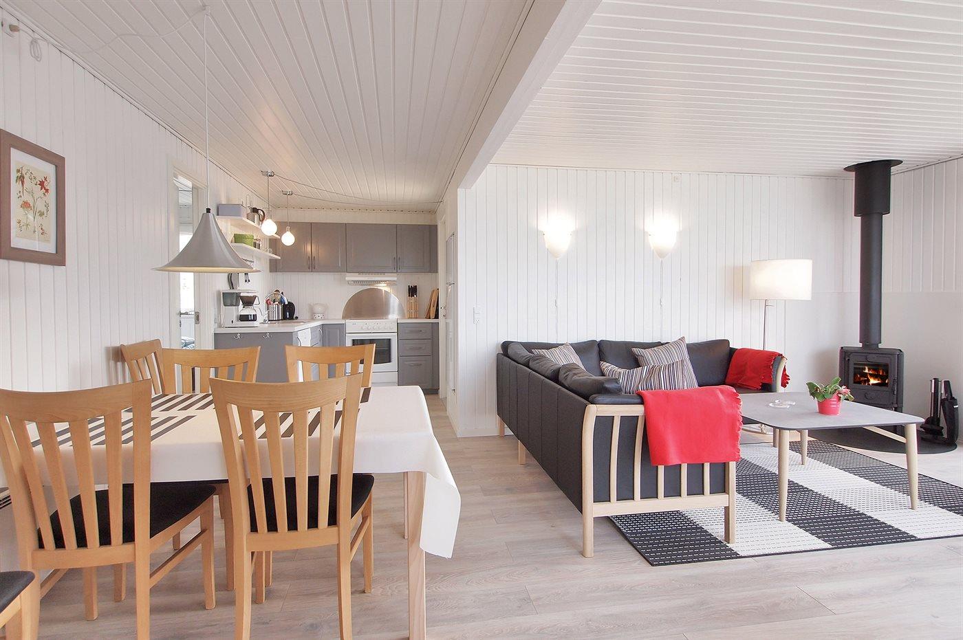 Direkte ud til havet ligger dette skønne sommerhus i træ med en formidabel udsigt over vandet. Huset er bygget i 1983, renoveret i 2015 og ligger på en dejlig naturgrund. Til huset hører en såvel åben som overdækket terrasse med havemøbler. Indvendig er gulve og lofter beklædt med træ. Badeværelse med bruseniche. Køkkenet er veludstyret med bl.a. opvaskemaskine og mikrobølgeovn. Stuen indeholder brændeovn, radio samt TV med parabol (digital). Der er installeret fibernet (200/200 Mbit). Husets 6 sovepladser fordeler sig på 3 soveværelser; 1 med dobbeltseng, 1 med 2 enkeltsenge og 1 med køjeseng (85 + 140 cm). Desuden barneseng og høj barnestol i huset. Et dejligt og nyrenoveret sommerhus med en unik beliggenhed i smukke omgivelser!