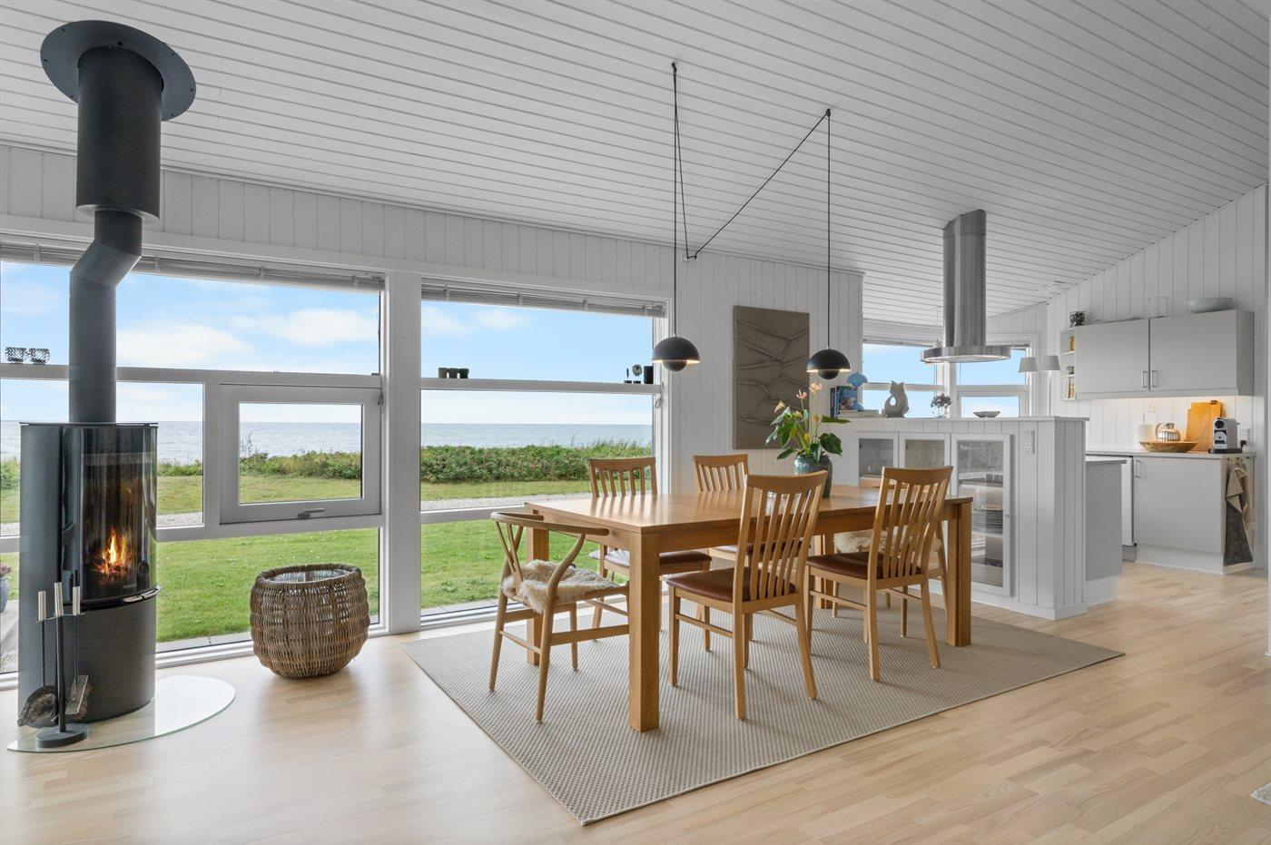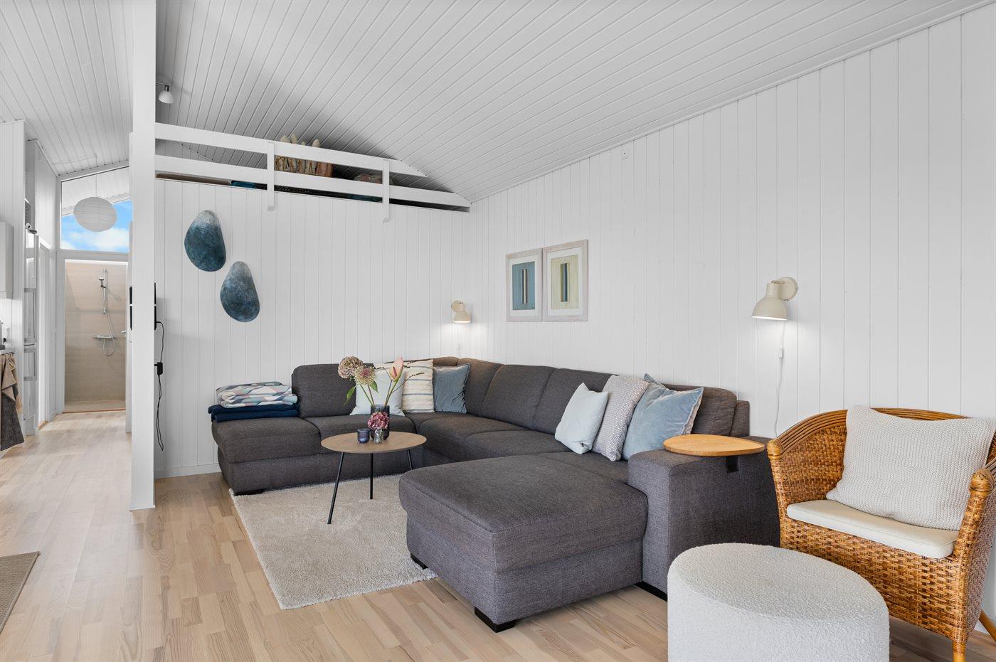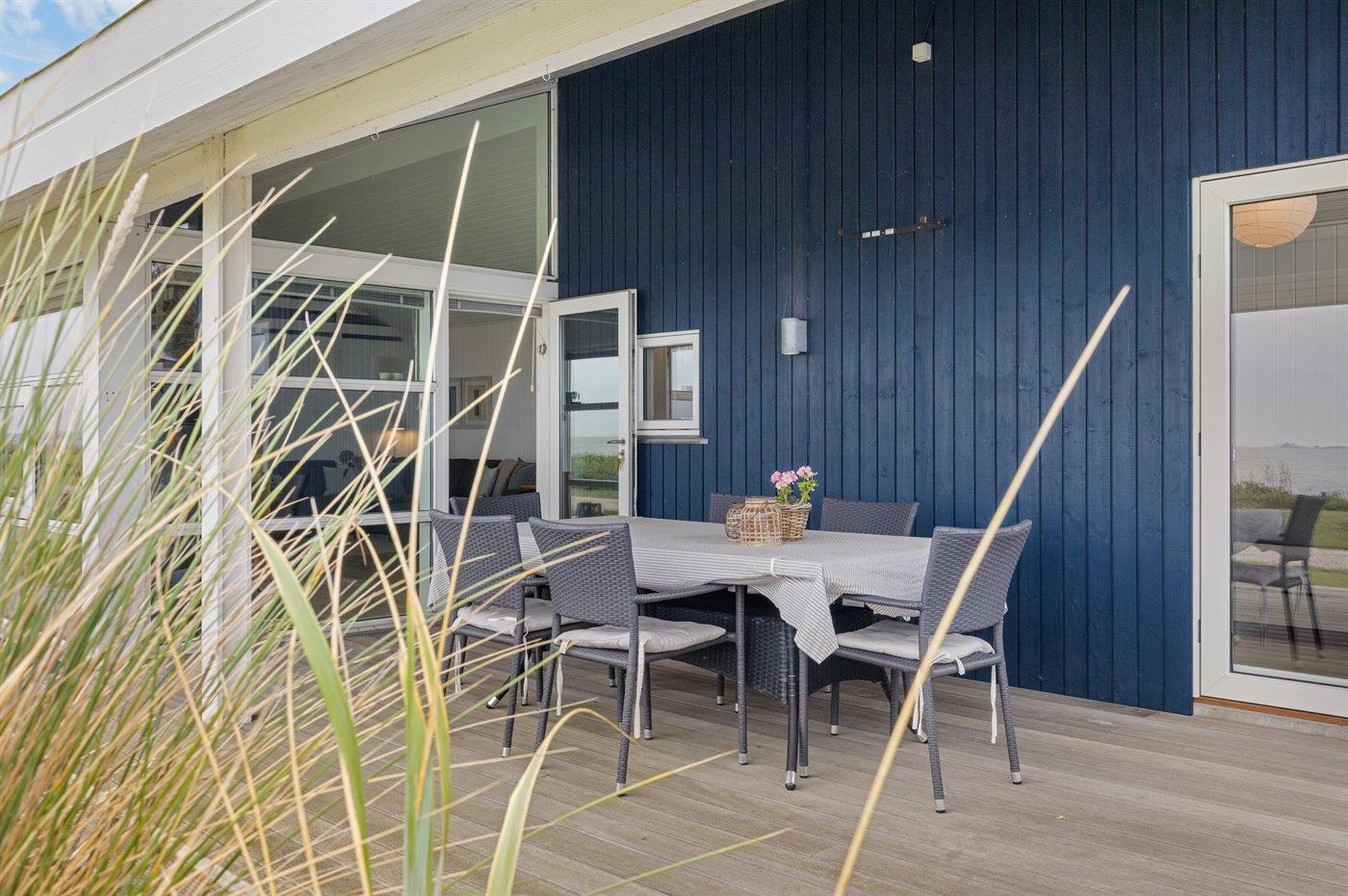 Ferieboligen er beliggende på en 605 m² stor naturgrund. Der er 20 m til havet. Nærmeste forretning er beliggende i en afstand af 6400 m. Til ferieboligen hører åbent terrasseareal. Desuden er der overdækket terrasse. Udendørs bruser. Grill til rådighed. Der er installeret stik til opladning af elbil. Type 2 stik. Med 11 kW ladeeffekt. Parkering ved ferieboligen.