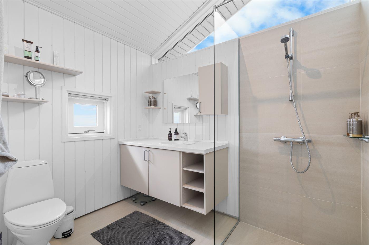 Der er 1 badeværelse med bruseniche og 2 toiletter, heraf 1 gæstetoilet. Der er gulvvarme på 1 badeværelse. Der er gulvvarme på gæstetoilettet.