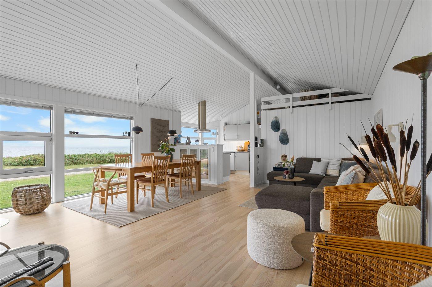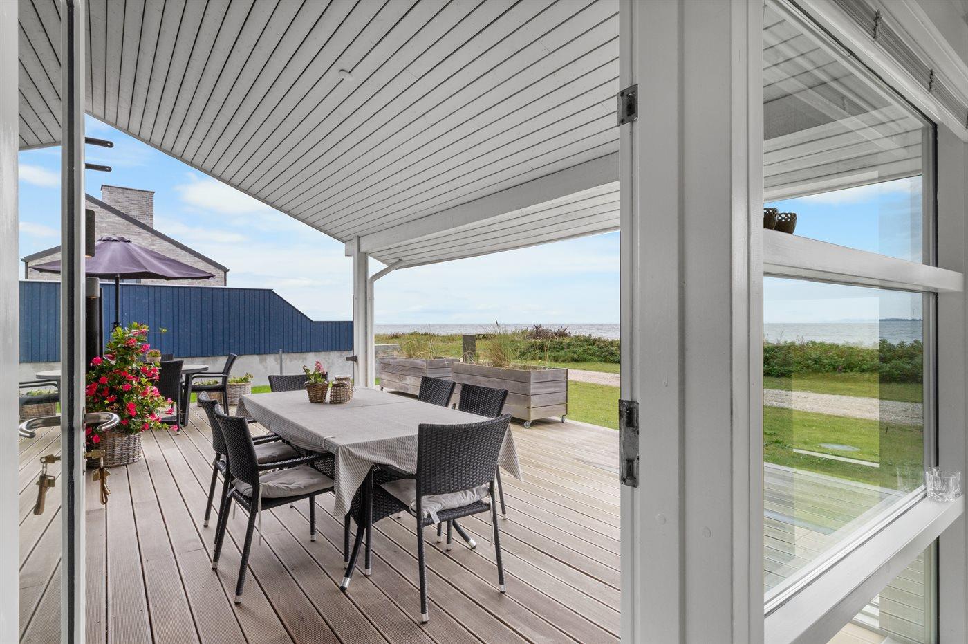 Flot sommerhus med havudsigt, stor overdækket terrasse og elbiloplader ved Sandager Næs.
