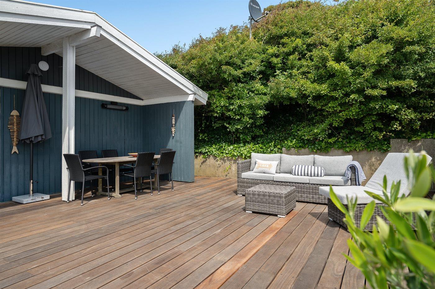 Ferieboligen er beliggende på en 526 m² stor havegrund. Der er 20 m til havet. Nærmeste forretning er beliggende i en afstand af 6500 m. Der er en golfbane i en afstand af 5000 m. Til ferieboligen hører 60 m² terrasseareal. Grill til rådighed. Parkering ved ferieboligen.