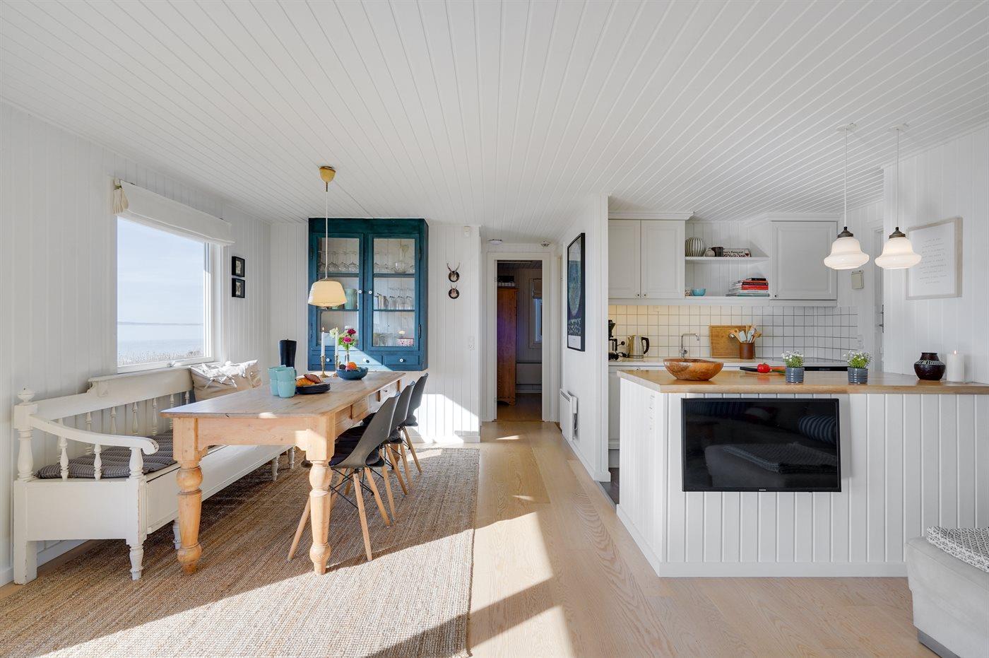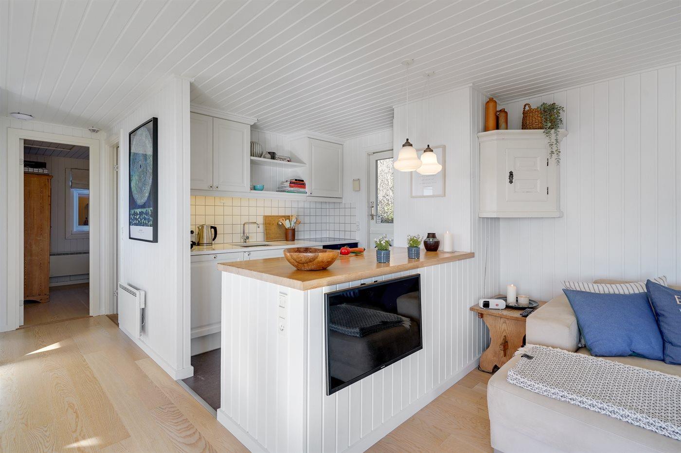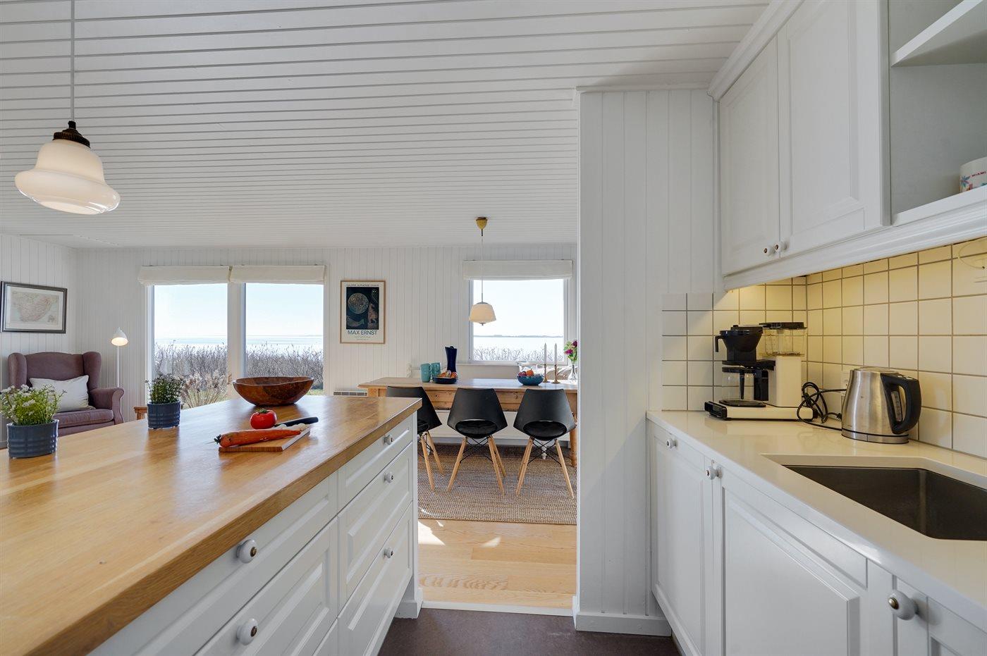 Køkkenet er udstyret med 1 køleskab. Der er 4 induktionskogeplader, varmluftovn, mikrobølgeovn samt opvaskemaskine.