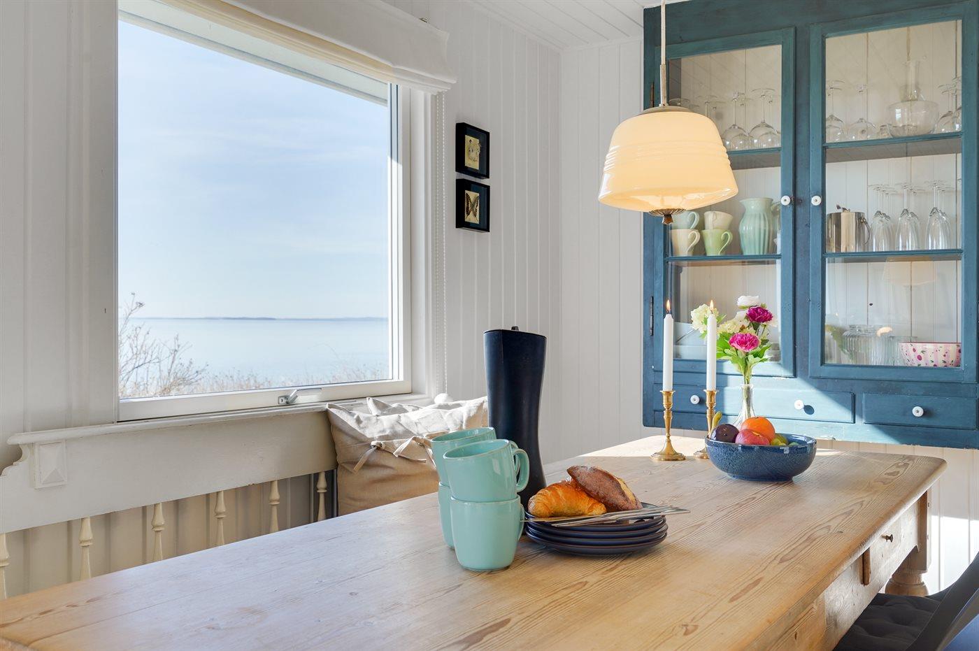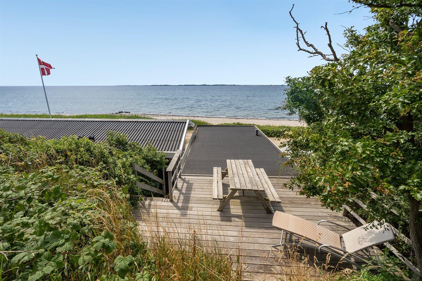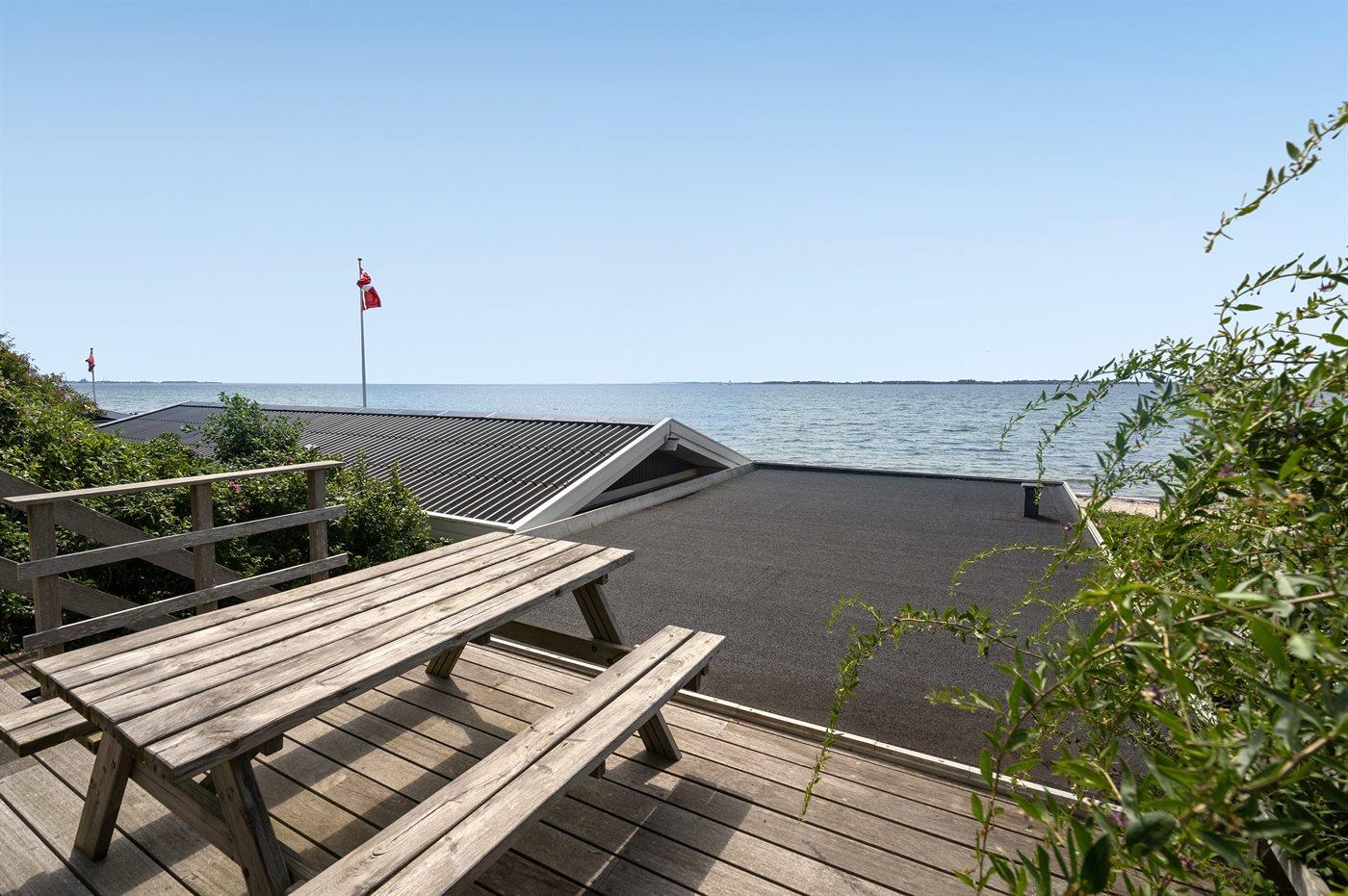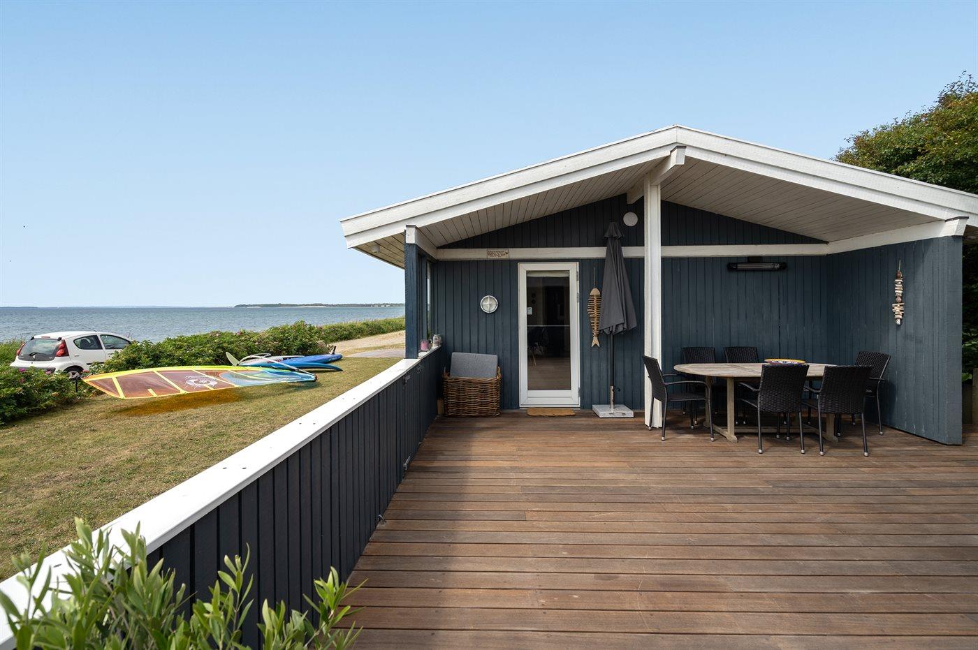 I første række ned til vandet og med havudsigt fra såvel hus som grund ligger dette pæne sommerhus - i et roligt og naturskønt område. Til huset hører gode terrasser, hvorfra den dejlige udsigt ligeledes kan nydes. I tilknytning til huset findes der et anneks, som er indrettet med tekøkken, badeværelse samt soveværelse med 2 sovepladser.