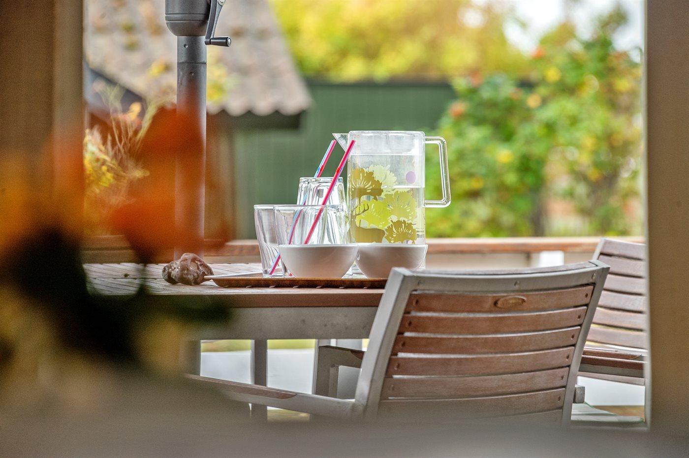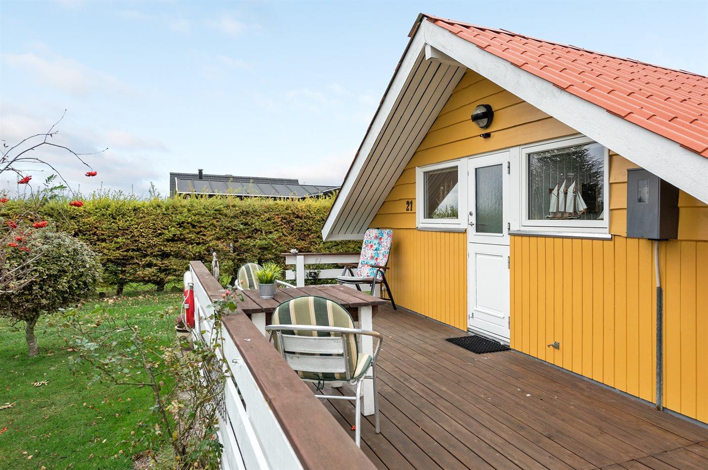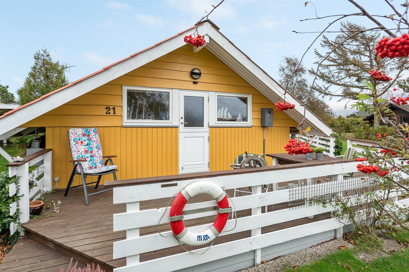 Hyggeligt sommerhus nær badestrand med brændeovn, terrasse og adgang til fælles boldbane i Sanderager Næs.