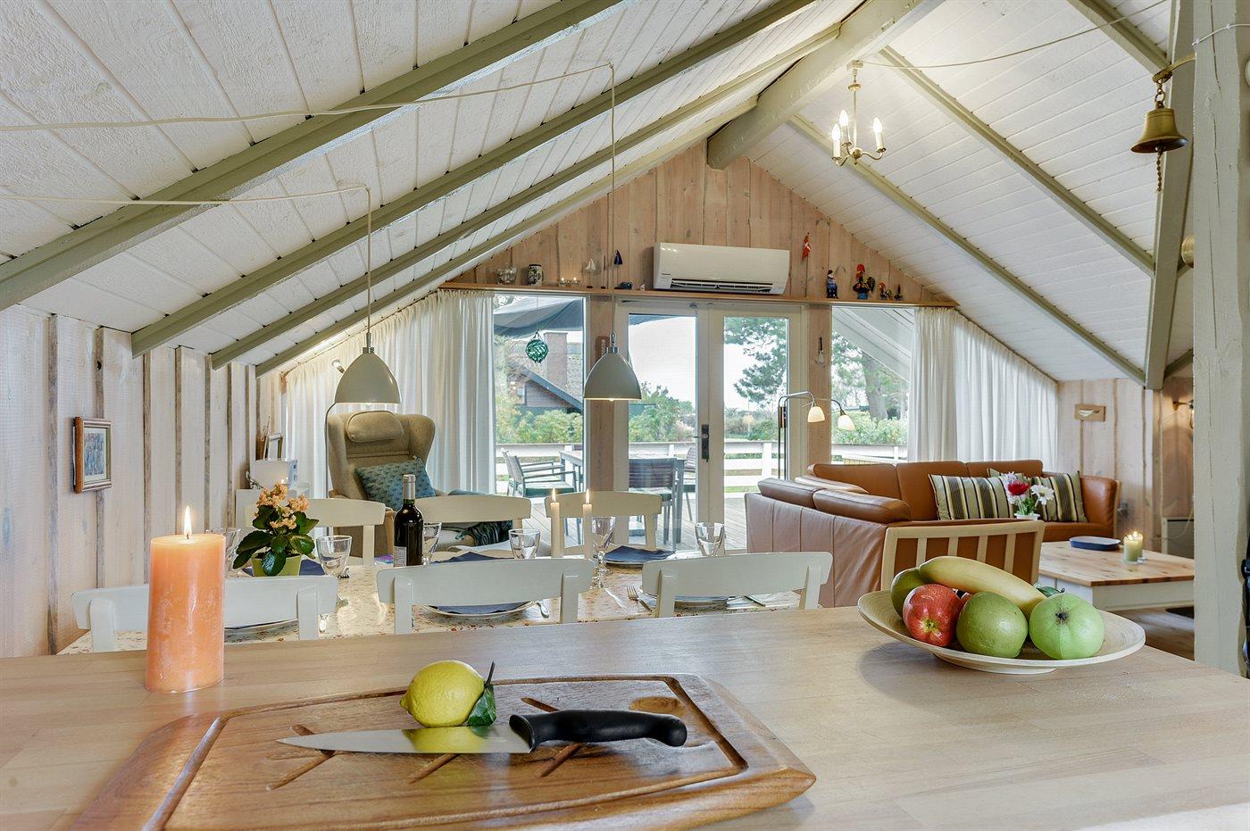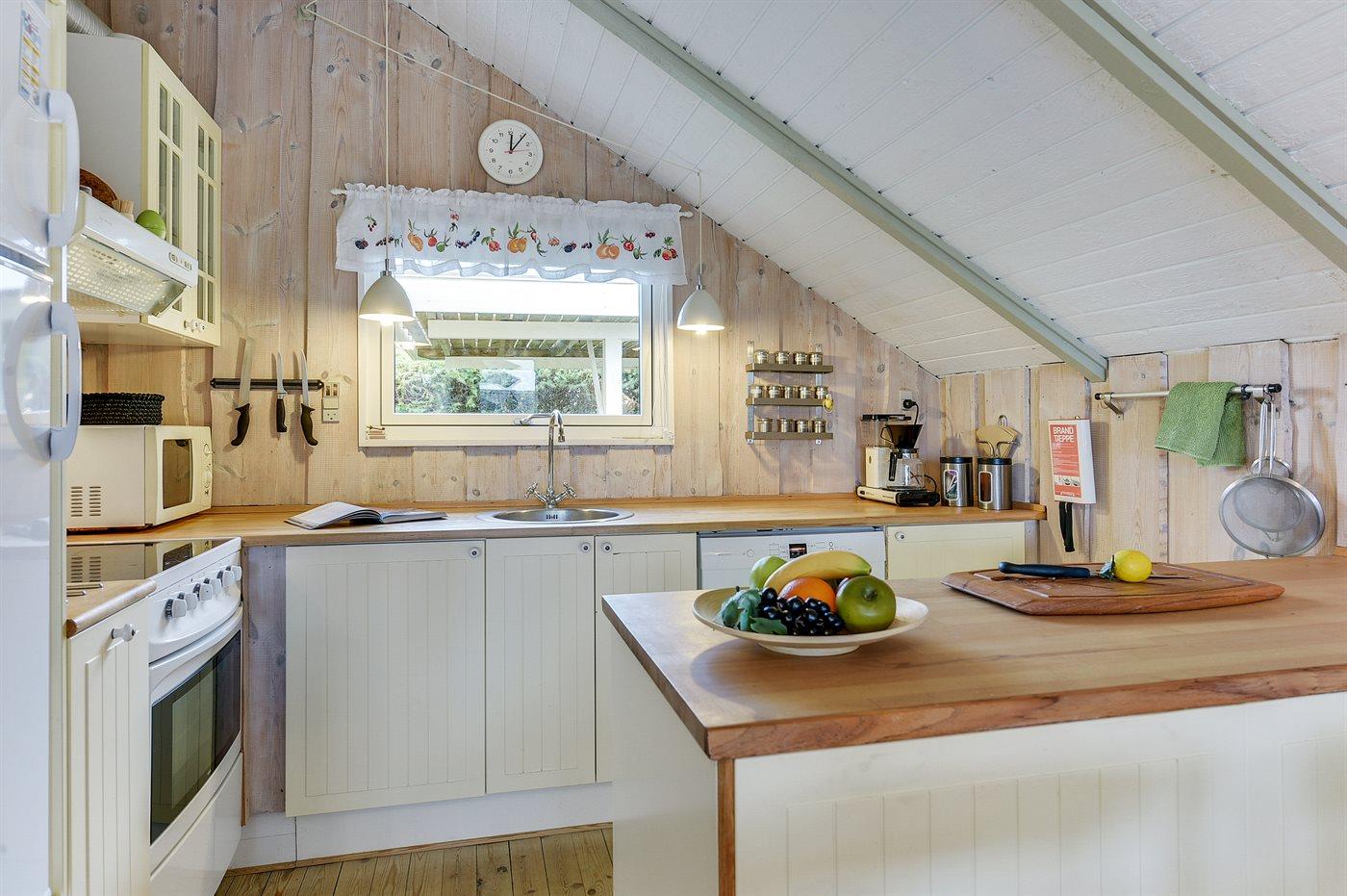 Køkkenet er udstyret med 1 køleskab. Der er 4 keramiske kogeplader, varmluftovn, mikrobølgeovn samt opvaskemaskine.