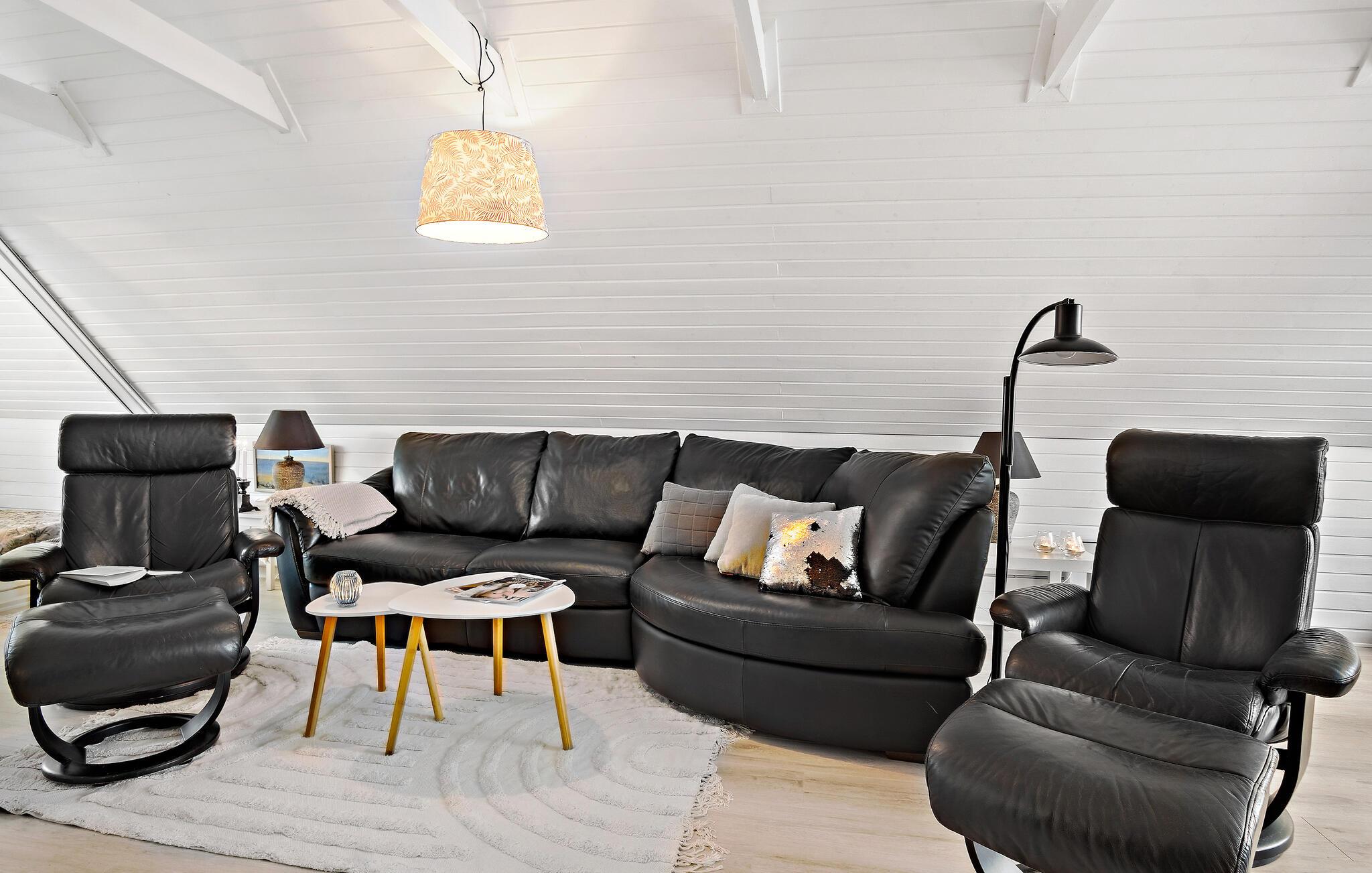 Huset er rummeligt og godt indrettet over to etager, der gør det til den perfekte base for en ferie med en lidt større familie. Indretningen fremtræder virkelig flot i lyse farver med moderne faciliteter, der gør det nemt at slappe af efter dagens udflugter.
