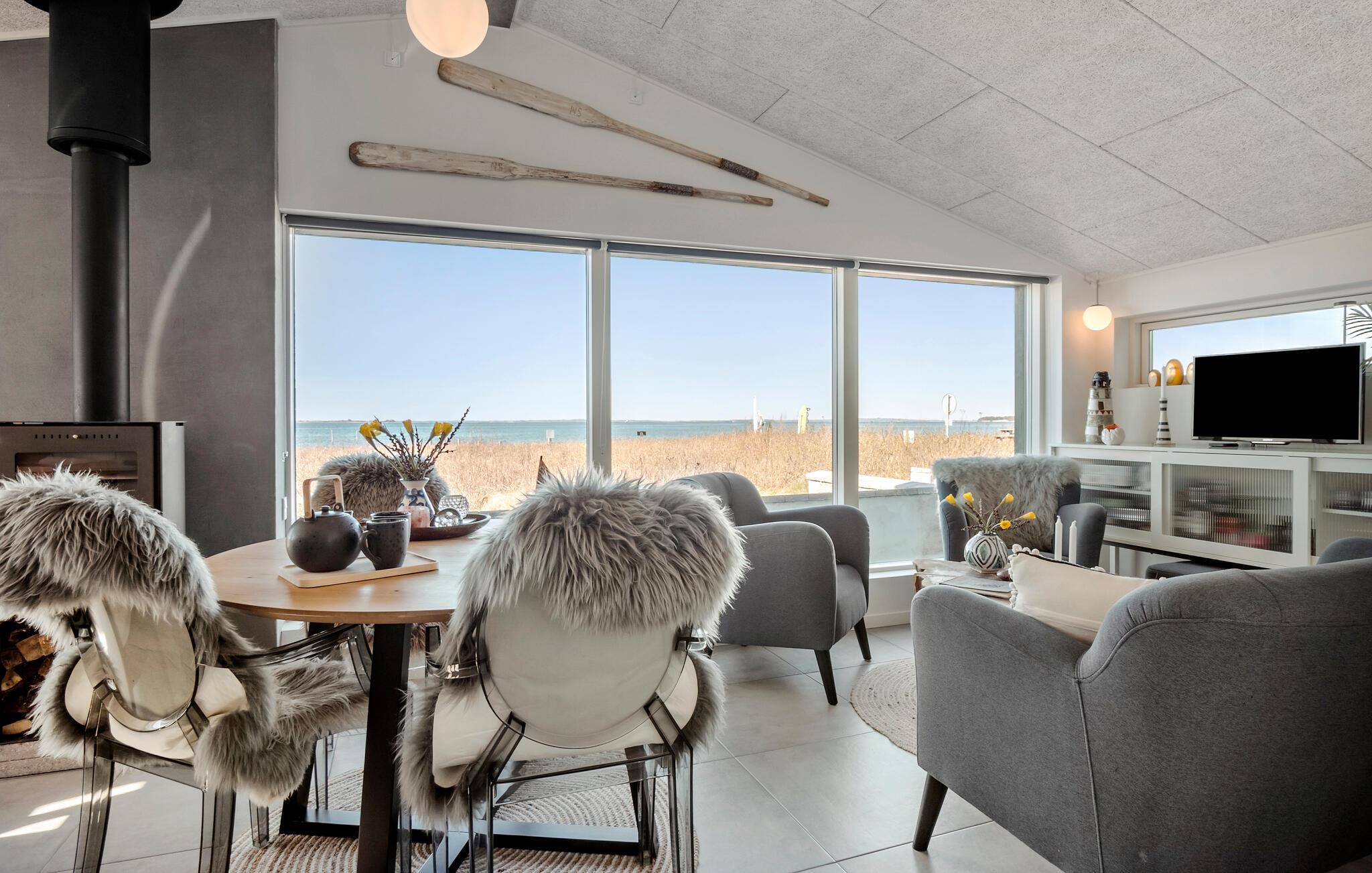 Dette charmerende sommerhus i Sandager Næs ligger kun få meter fra havet og byder på en imponerende panoramaudsigt over Lillebælt og Bågø. Huset er lyst, åbent og luftigt i sin indretning, med et dejligt lys fra vinduerne ud mod vandet. Skulle kulden banke på, er det rart at tænde op i alrummets brændeovn og nyde en kop kaffe, mens I kigger ud på omgivelserne.