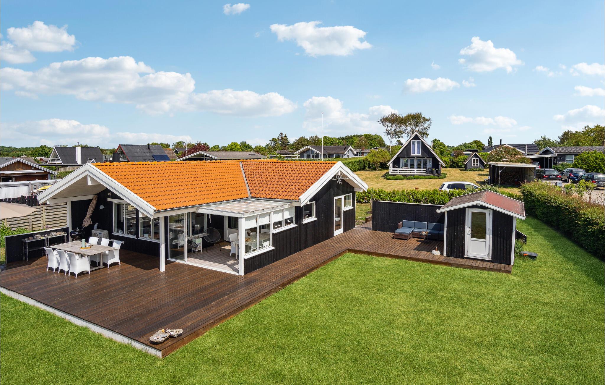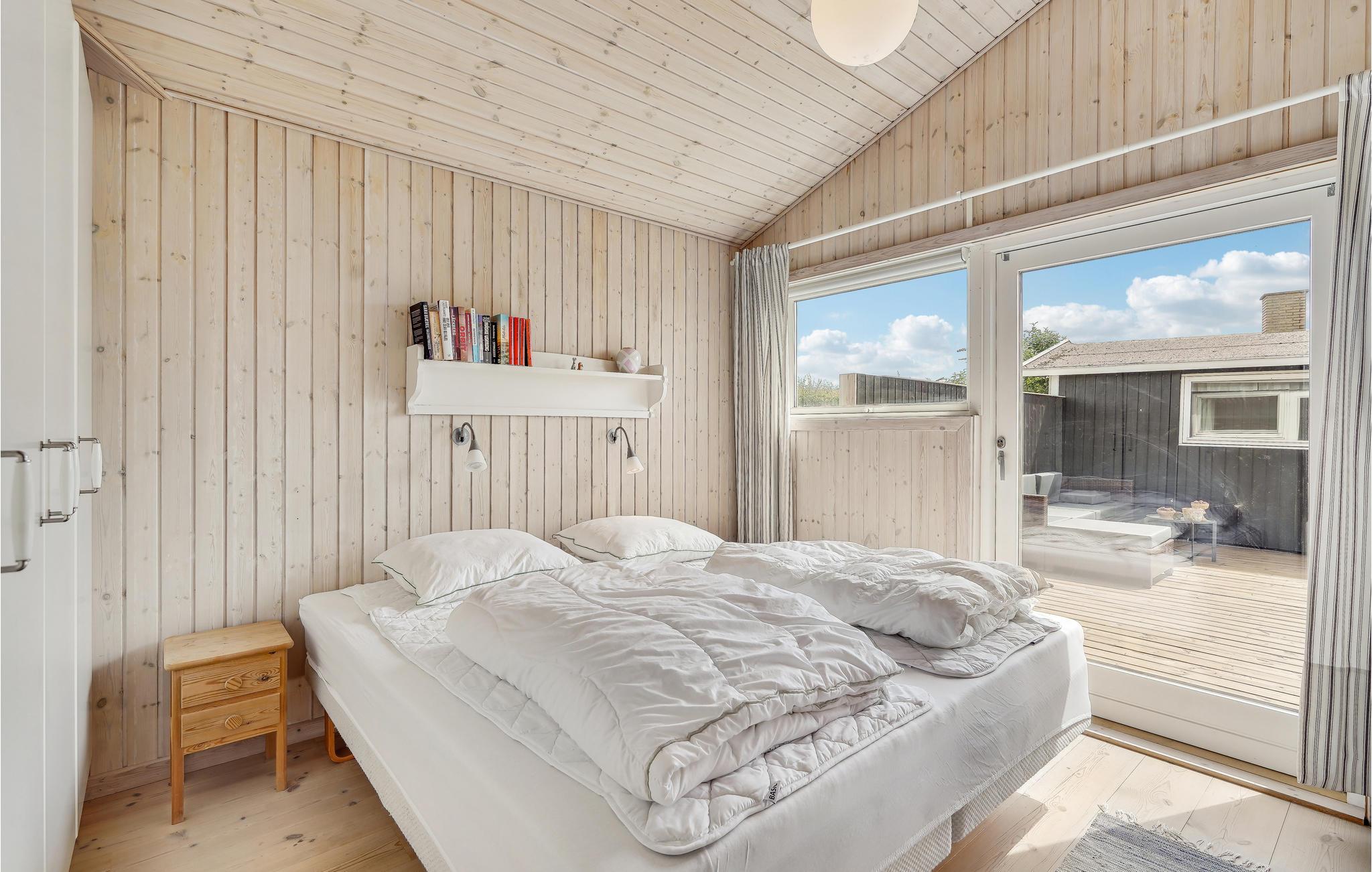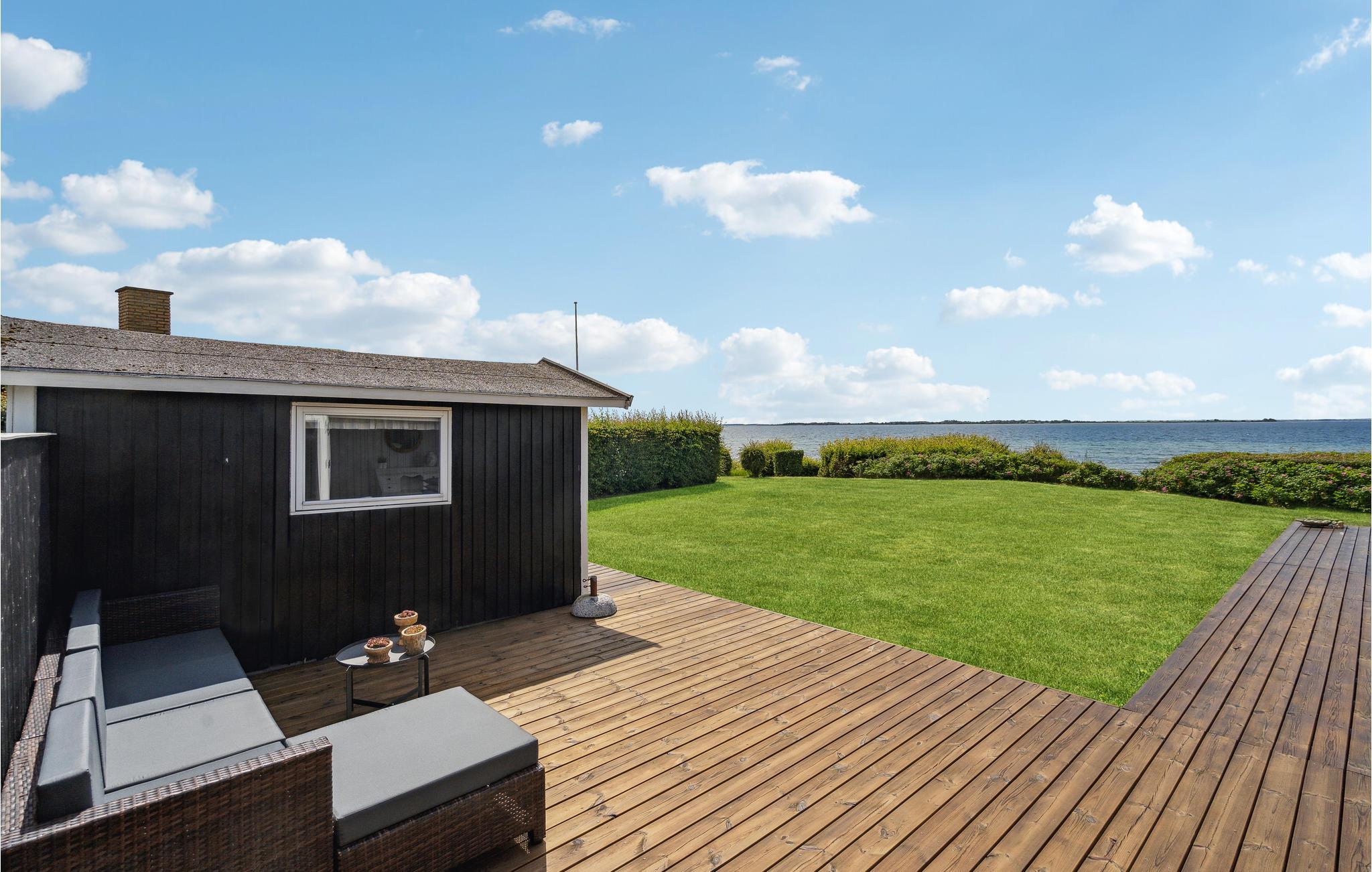 Er ønsket ubegrænset udsigt over havet fra både hus og grund, så kan det opfyldes her. Dette sommerhus af træ, ligger på en grund der støder op til stranden og er på 88 m², med plads til seks personer. Det rummer fire soveværelser og et badeværelse, og har stue og køkken i et. Vælg mellem flere udendørs muligheder: en udestue (u/varme), delvist overdækket og åben terrasse hvor solsengene står parat til solbad. Her kan I dufte havet og nyde lyden af bølgerne der slår mod stranden for enden af grunden. Der er 11 km til Assens, hvorfra I også kan tage den lille rød/hvide færge over til Baagø, og tilbringe dagen med at gå øen rundt, eller bare slappe af på sandstranden lige ved siden af færgelejet. I Assens kan I købe ind, gå på museum og spise på en af byens gode restauranter. Køreturen mellem Assens og Faaborg er for øvrigt en af Fyns mest naturskønne og idylliske.