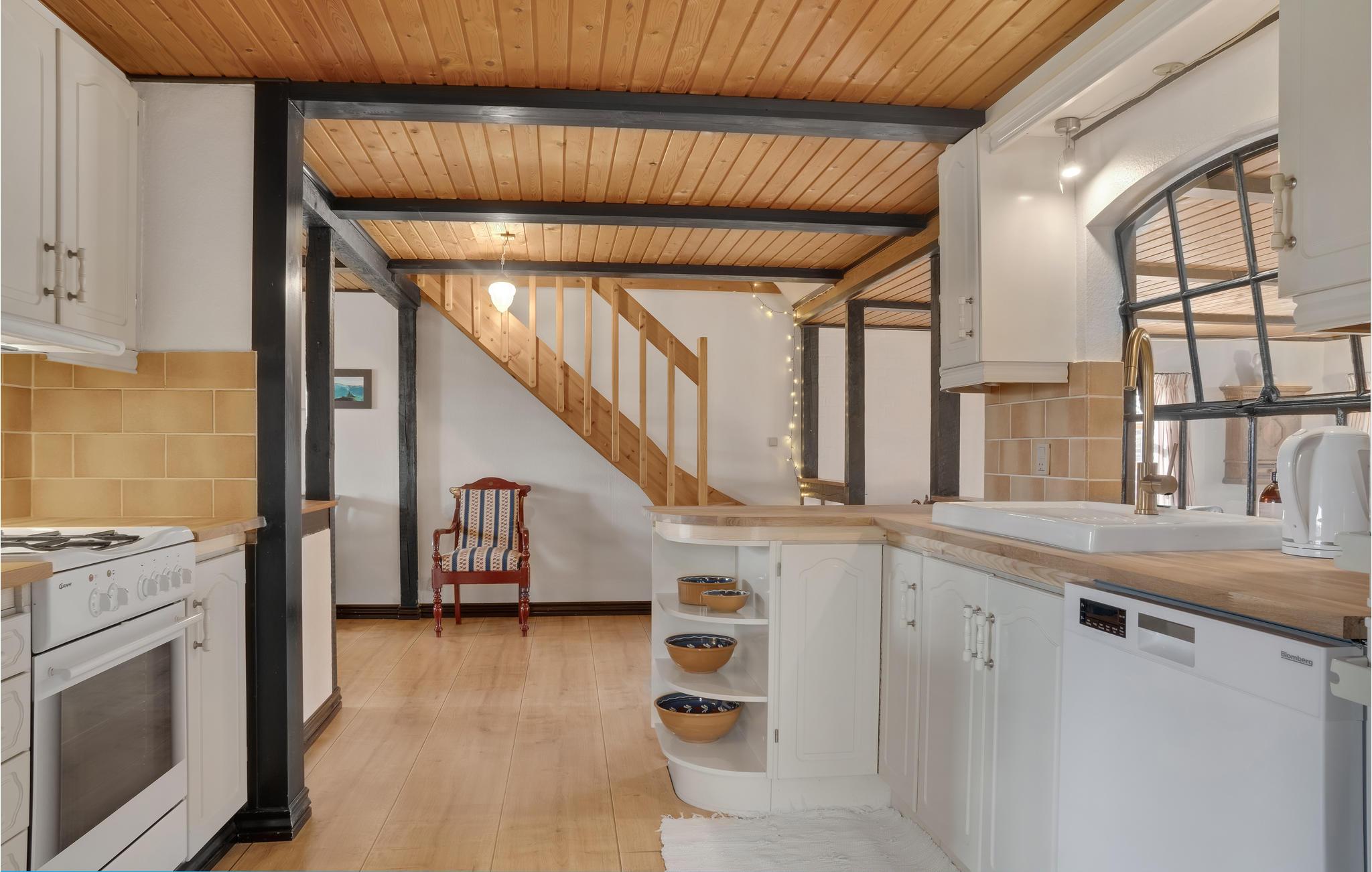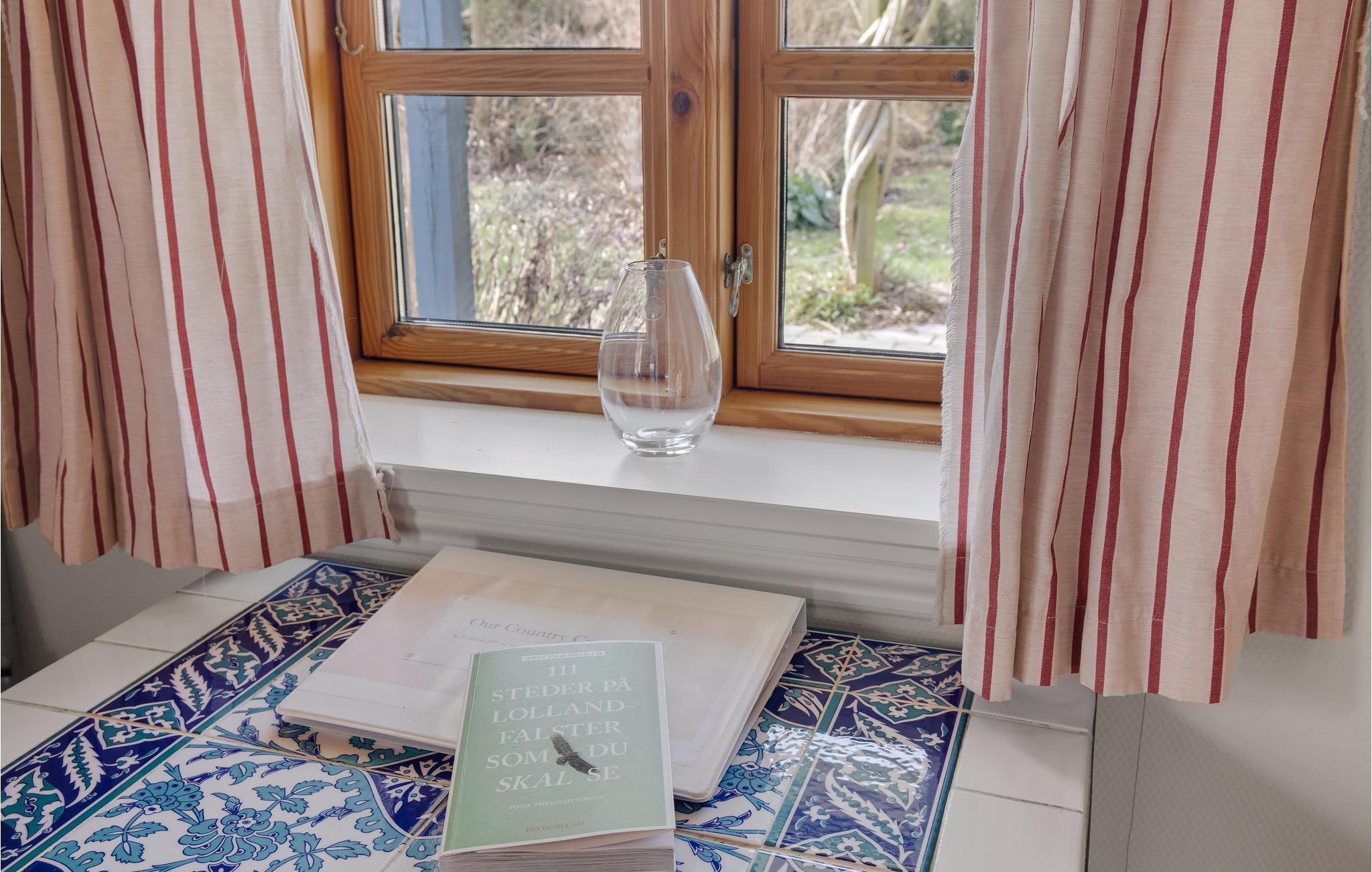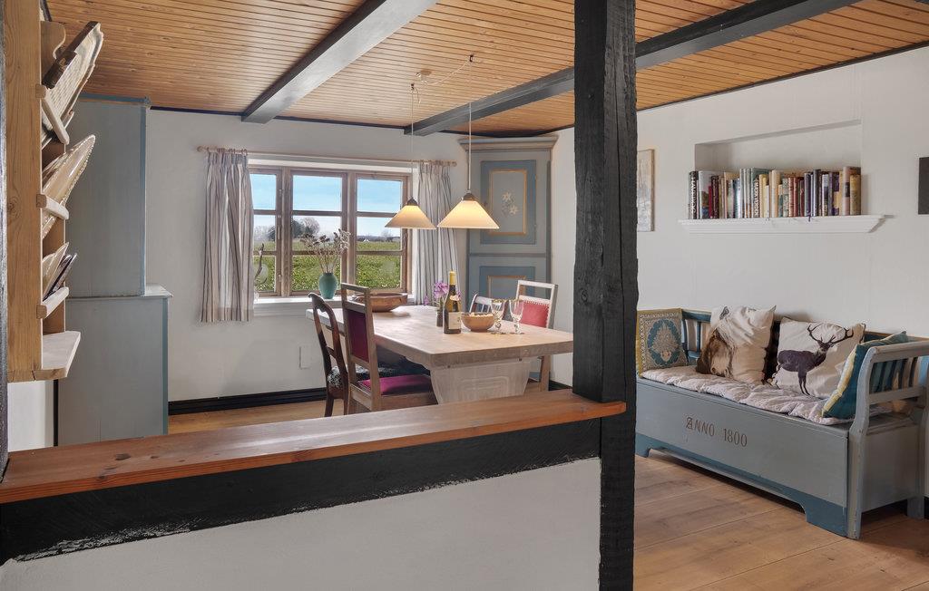 Velkommen til dette charmerende hus, der ligger i fredelige, naturskønne omgivelser kun få hundrede meter fra Nakskov Fjord. Indretningen er nydeligt udført med sans for at bevare den ægte, landlige idyl uden at gå på kompromis med komforten. Interiøret fremtræder varmt og rustikt med velholdte trælofter, synlige bindingsværk og sprossede vinduer, der giver dejlige lysindfald fra flere sider. Hvis vejret viser lidt tænder, kan I fyre op i brændeovnen, der varme og et knitrende lydtapet til madlavningen i det veludstyrede køkken, måltiderne med udsigt til omgivelserne og aftenhyggen med brætspil til sent.