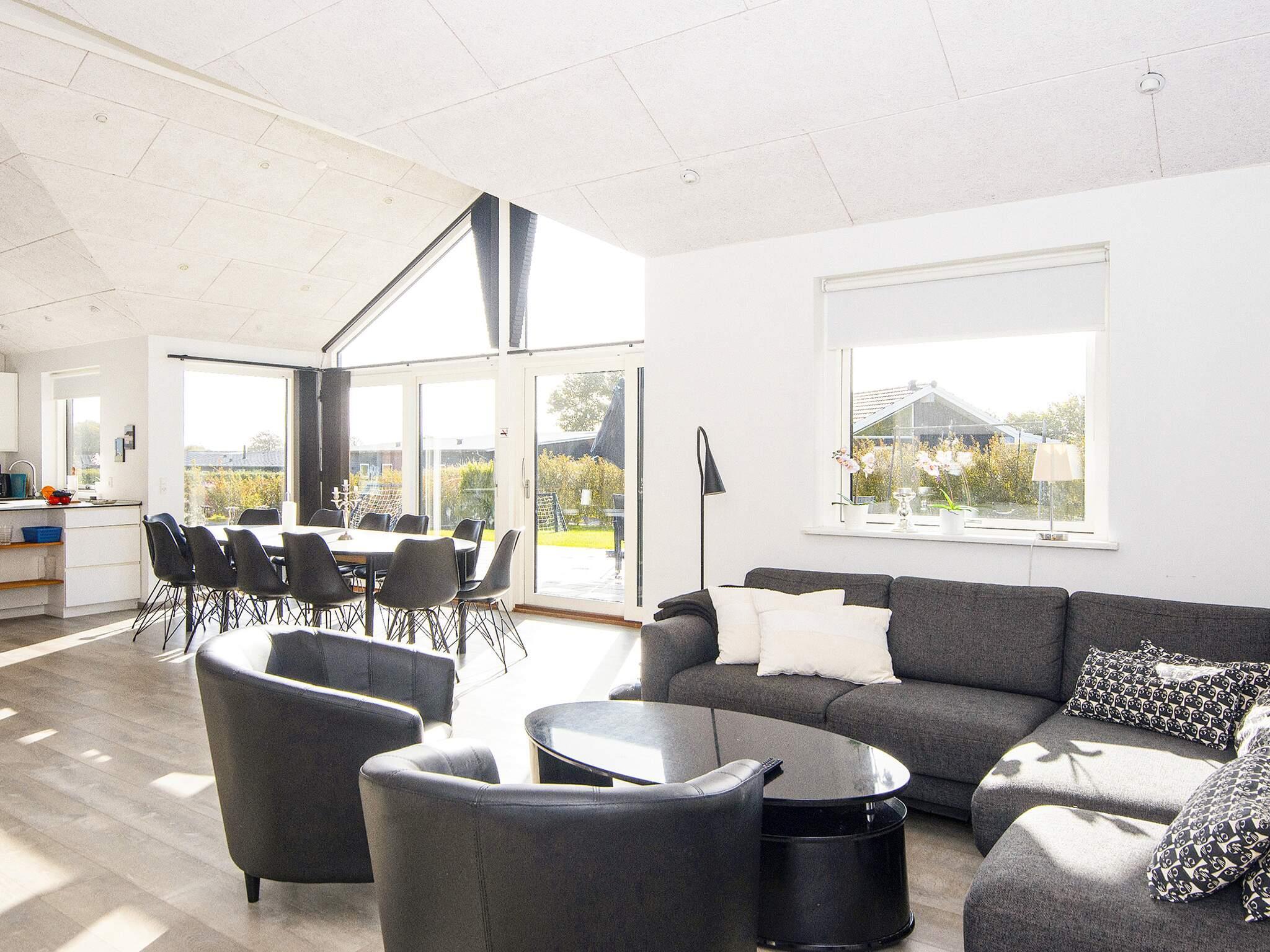 Sommerhuset har et stort og lyst køkken/alrum med højt til loftet. I rummet ved siden af ??stuen finder du husets aktivitetsrum, hvor du blandt andet kan hygge dig med bordfodbold. Huset er praktisk indrettet med fem soveværelser, fire værelser med dobbeltseng, et værelse med sovesofa til to personer samt to sovepladser på hemsen.