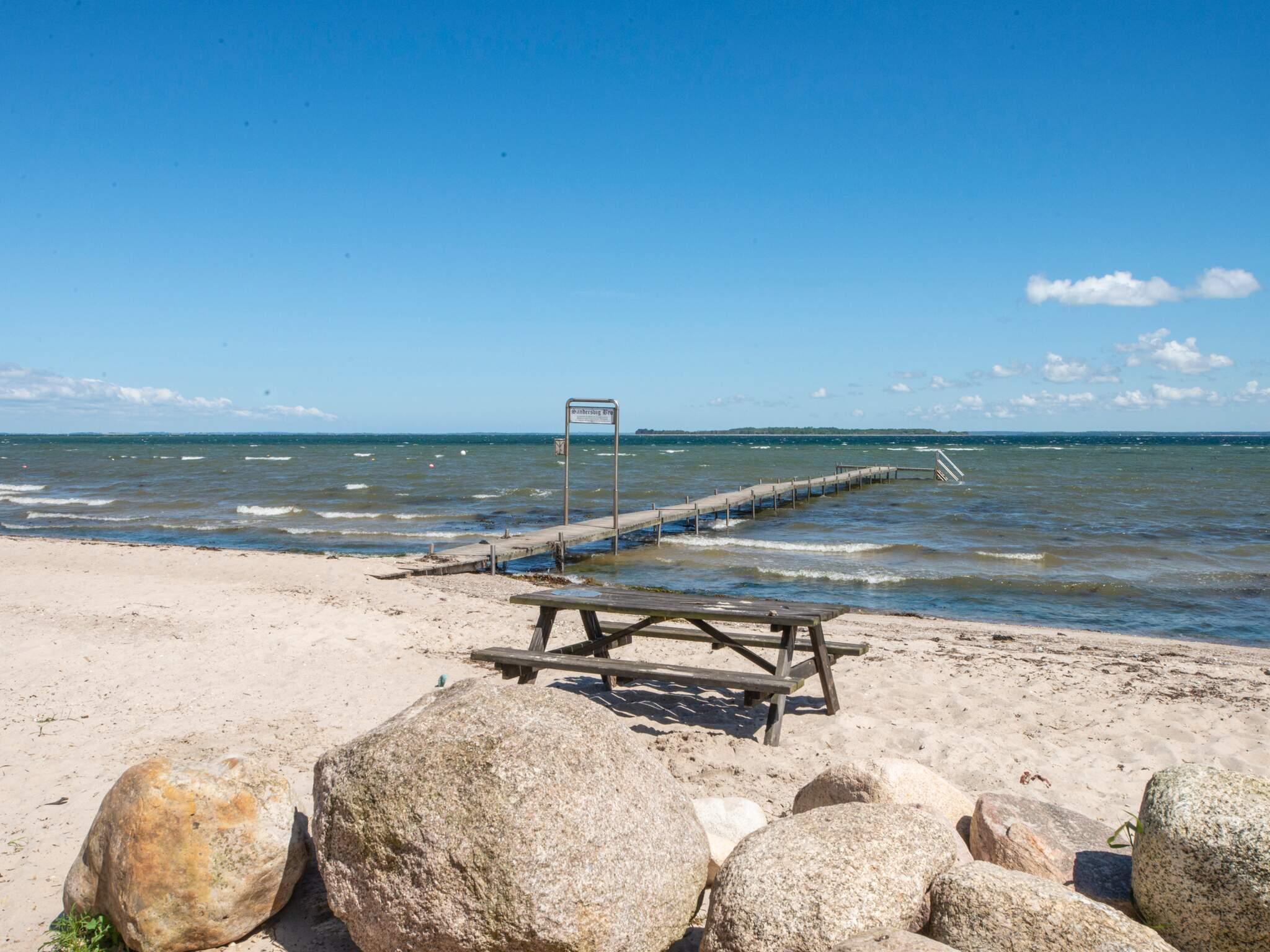 Strandnært og hyggeligt sommershus i sandersvig med dejlig over fjorden. Sommerhuset er et klassisk sommerhus med masser af charme. Sommerhuset er indrettet med åbent køkken alrum med spiseplads i forbindelse med opholdsstuen hvor der er tv og brændeovn. Der er 3 soveværelser og et pænt badeværelse. På terrassen er der grill og havemøbler til rådighed og plænen indbyder til boldspil og leg.