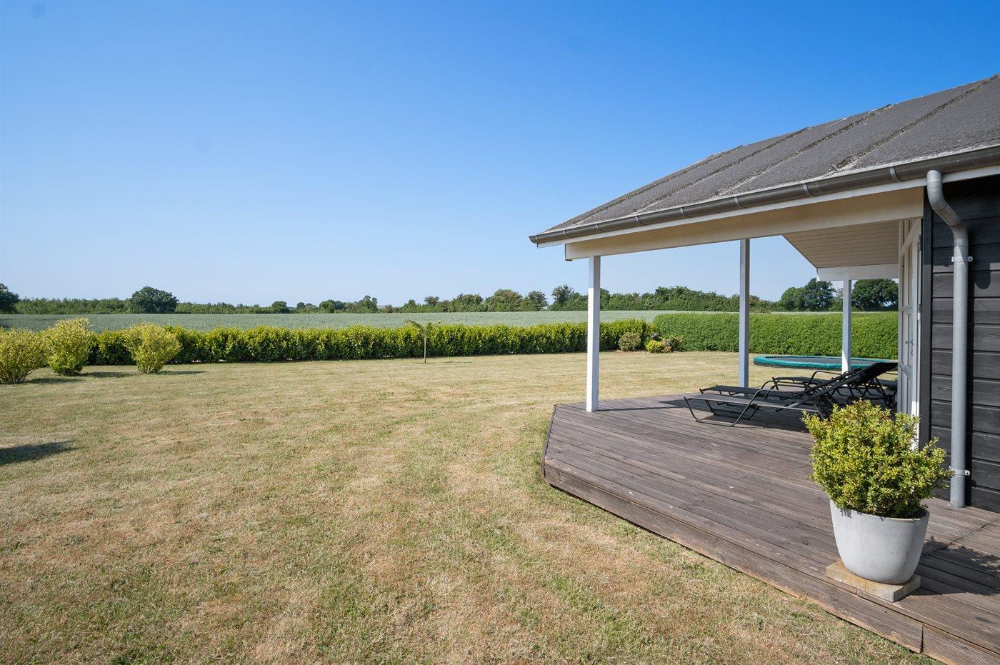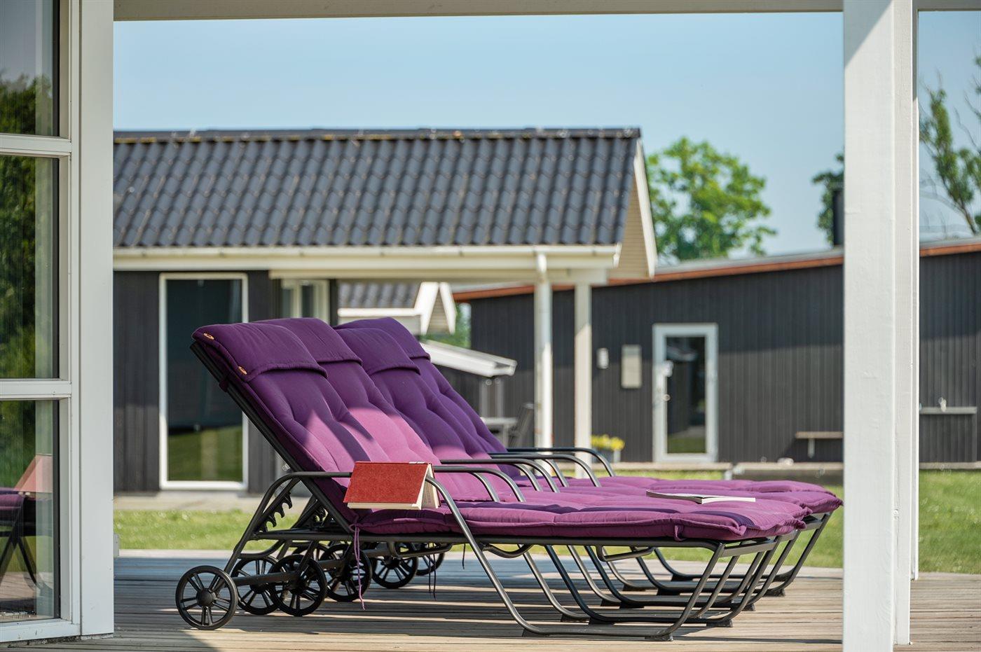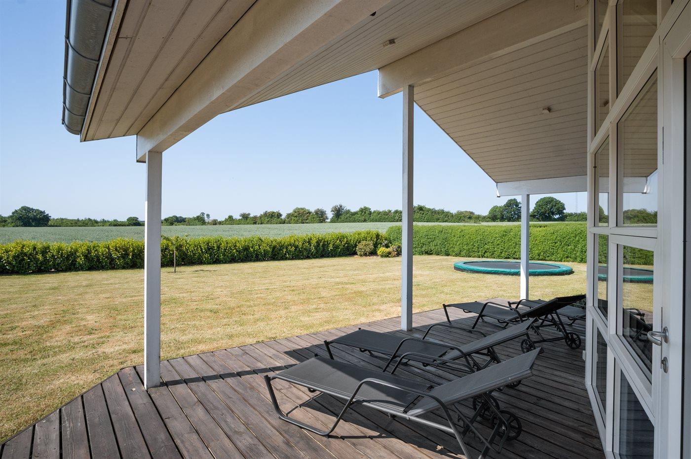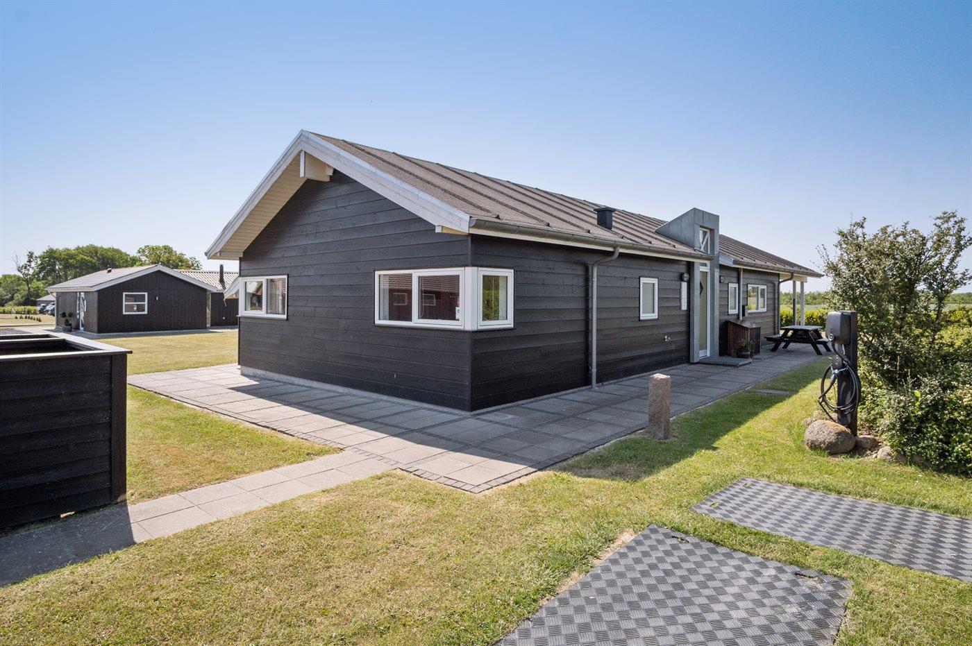 Ferieboligen er beliggende på en 1129 m² stor naturgrund. Der er 550 m til havet. Nærmeste forretning er beliggende i en afstand af 6700 m. Til ferieboligen hører 30 m² terrasseareal. Desuden er der 8 m² overdækket terrasse. Der er redskabsrum. Gynge. Sandkasse. Trampolin. Rutchebane. Der er installeret stik til opladning af elbil. Parkering ved ferieboligen.