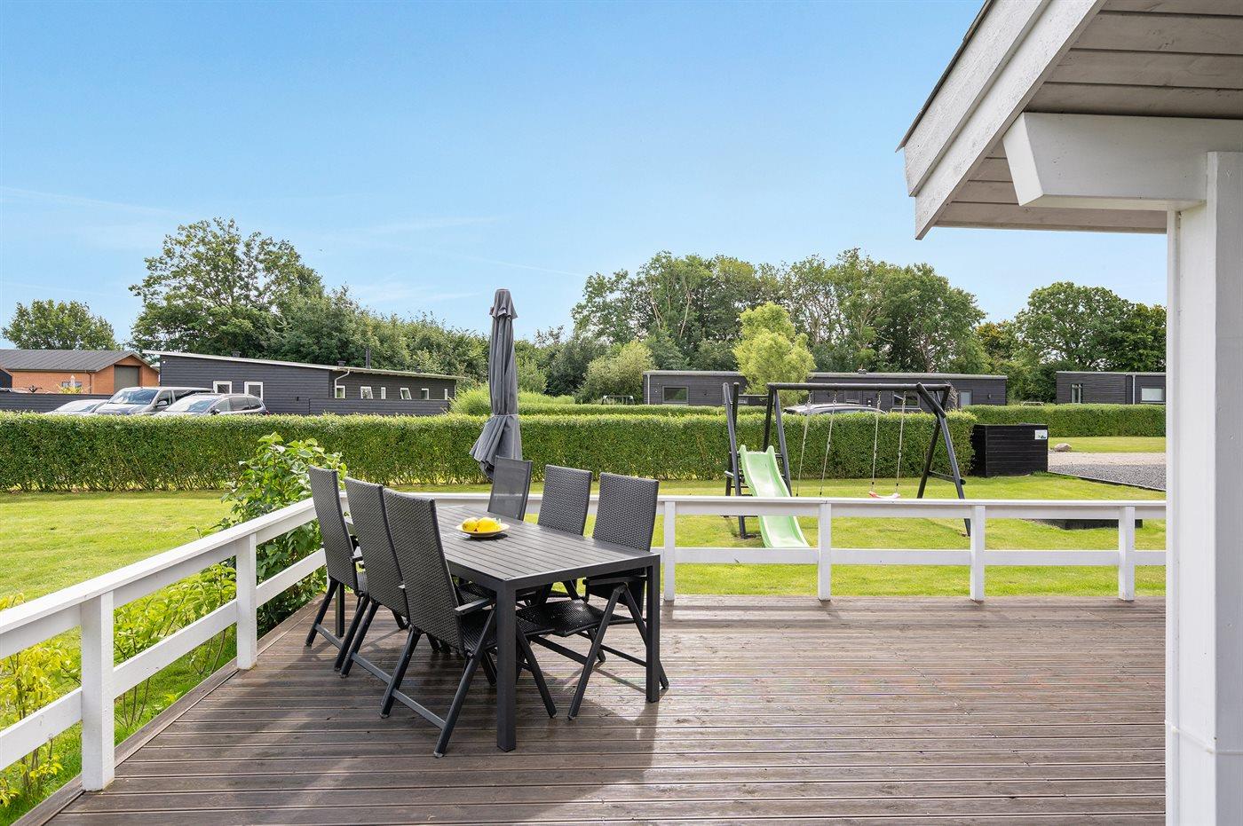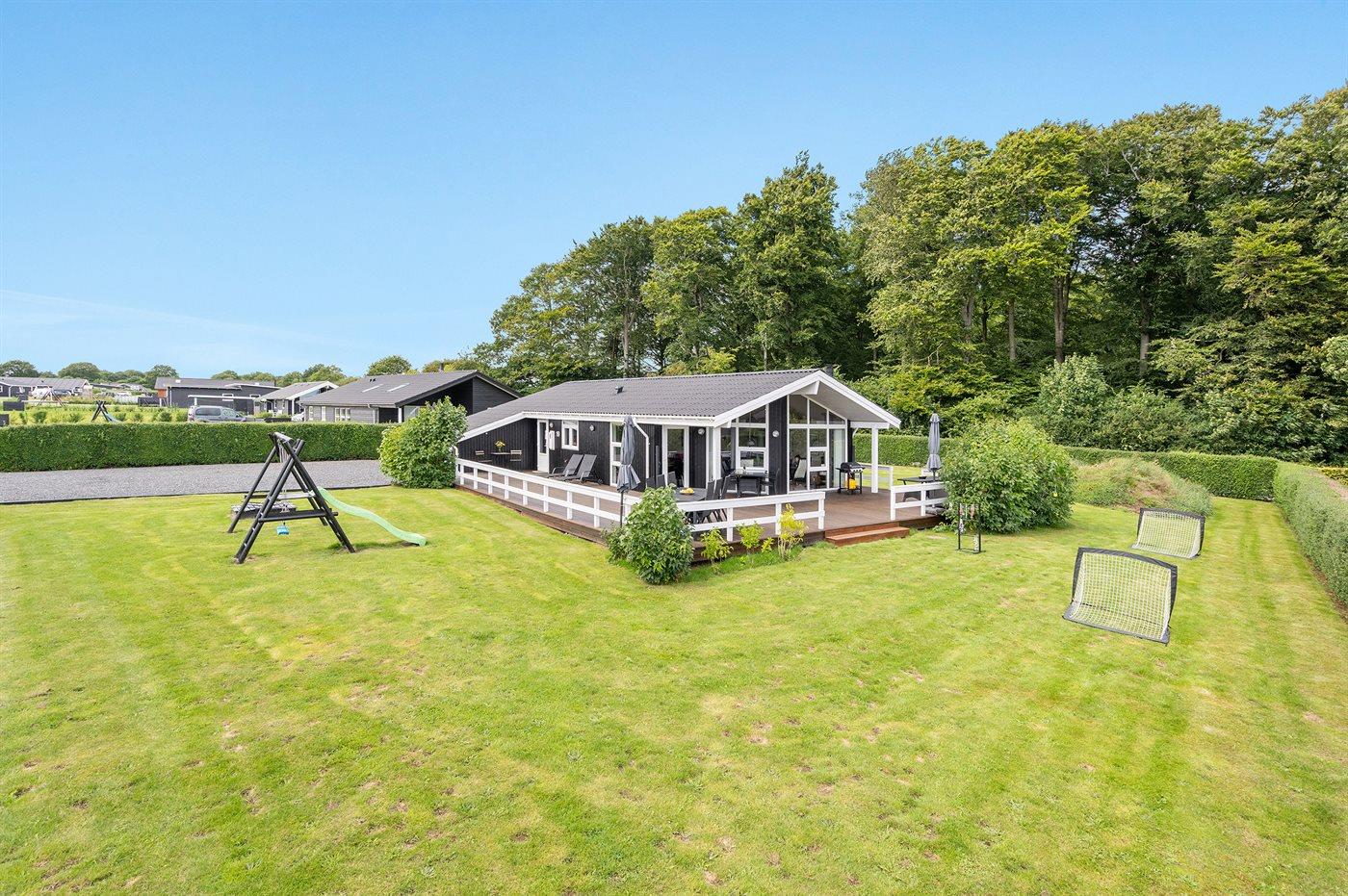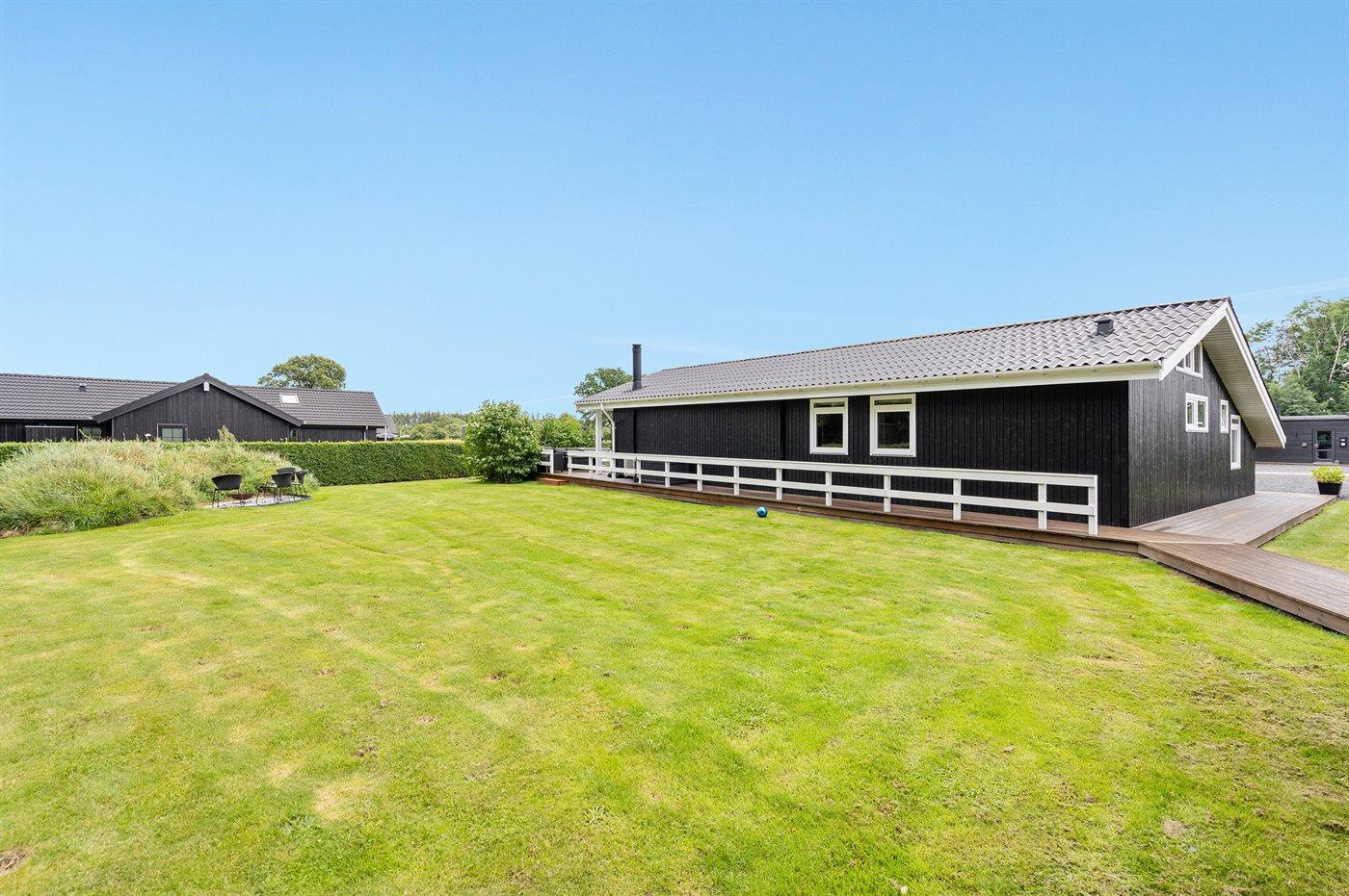 Ferieboligen er beliggende på en 1100 m² stor havegrund. Der er 300 m til havet. Nærmeste forretning er beliggende i en afstand af 500 m. Til ferieboligen hører 150 m² terrasseareal. Desuden er der 15 m² overdækket terrasse. Gynge. Sandkasse. Trampolin. Rutchebane. Fodboldmål. Der er installeret stik til opladning af elbil. Parkering ved ferieboligen.