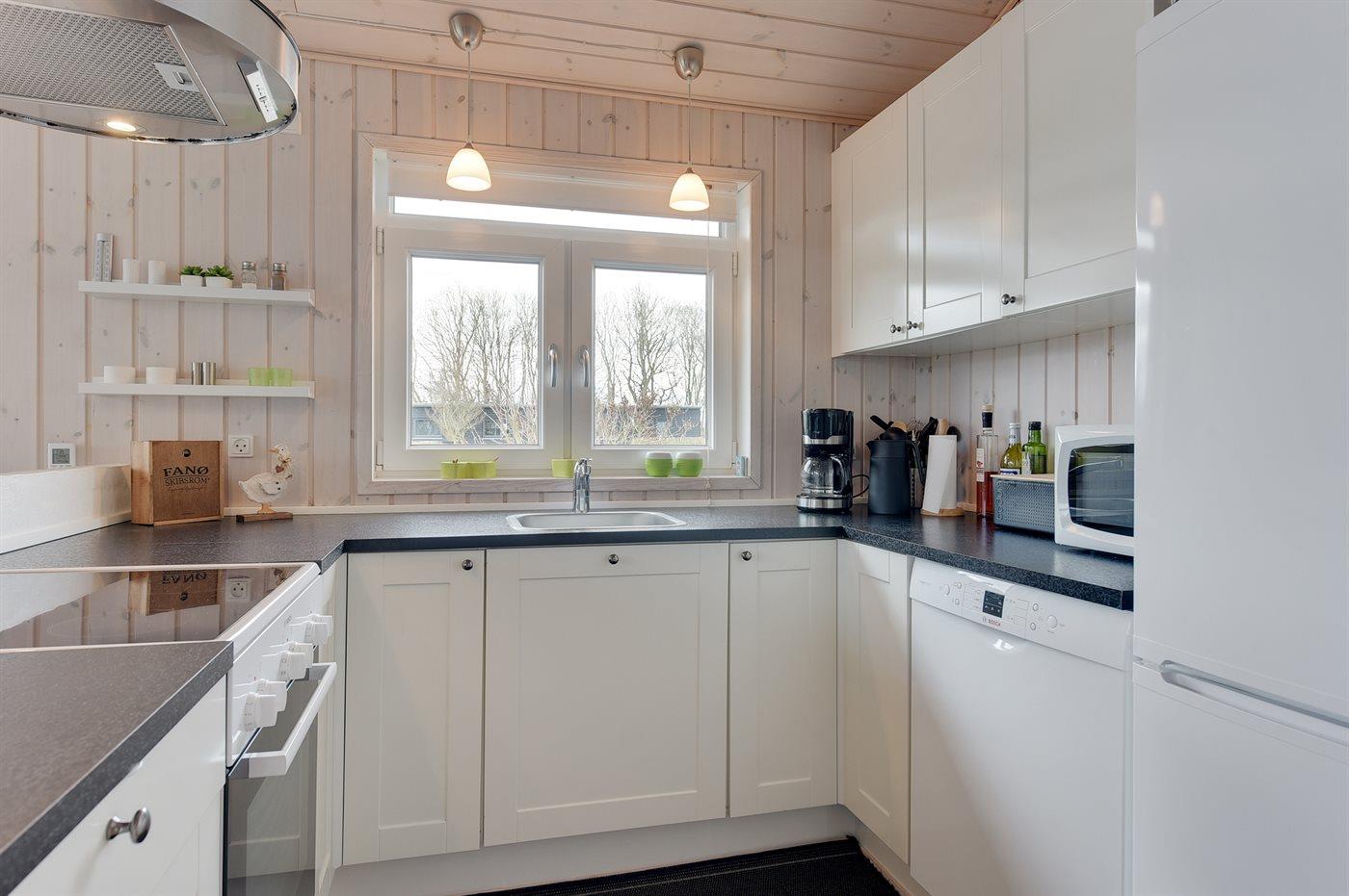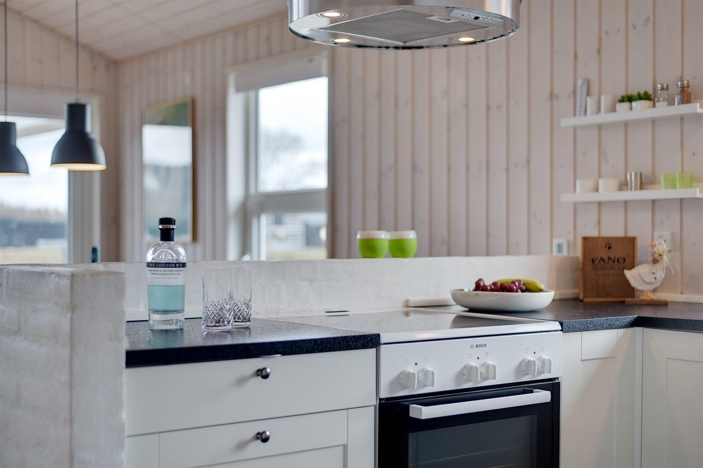 Køkkenet er udstyret med 1 køleskab. Der er 4 keramiske kogeplader, varmluftovn, mikrobølgeovn samt opvaskemaskine.