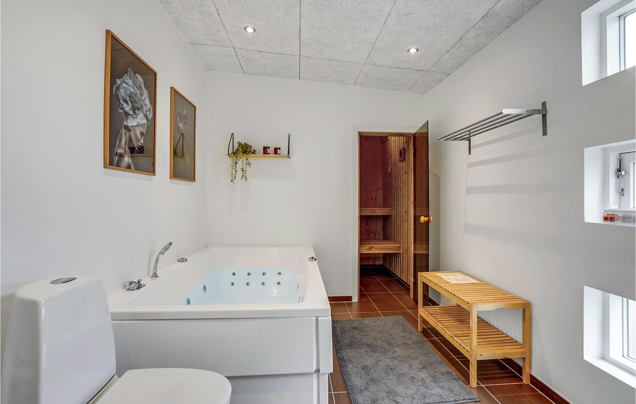 Rummeligt sommerhus tæt på vand og skov med wellness, aktivitetsrum og stor terrasse i naturskønne Sandersvig.
