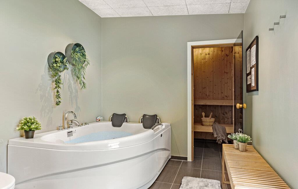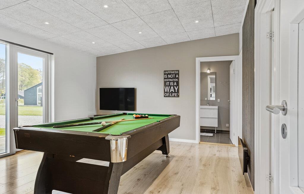 Velkommen indenfor i det indbydende og hyggelige sommerhus. Tilbring masser af kvalitetstid sammen, mens nogle laver mad i det åbne køkken og andre spiller spil ved spisebordet eller slapper af med en god film i sofaen. Hele familien vil elske aktivitetsrummet, hvor I har mulighed for at vise jeres færdigheder i bordtennis, pool og bordfodbold. Efter en aktiv dag er det skønt at slappe af i spabadet eller blive varmet igennem i saunaen og komme helt ned i gear. Nyd en lækker grillmiddag på terrassen og afslut dagen med at riste skumfiduser over bålet i haven. De friske kan tage soveposer med og overnatte i shelteret, for en helt særlig ferieoplevelse. Solens stråler kan nydes fuldt ud i haven eller på terrassen, hvor I også kan finde skygge, hvis I foretrækker det.