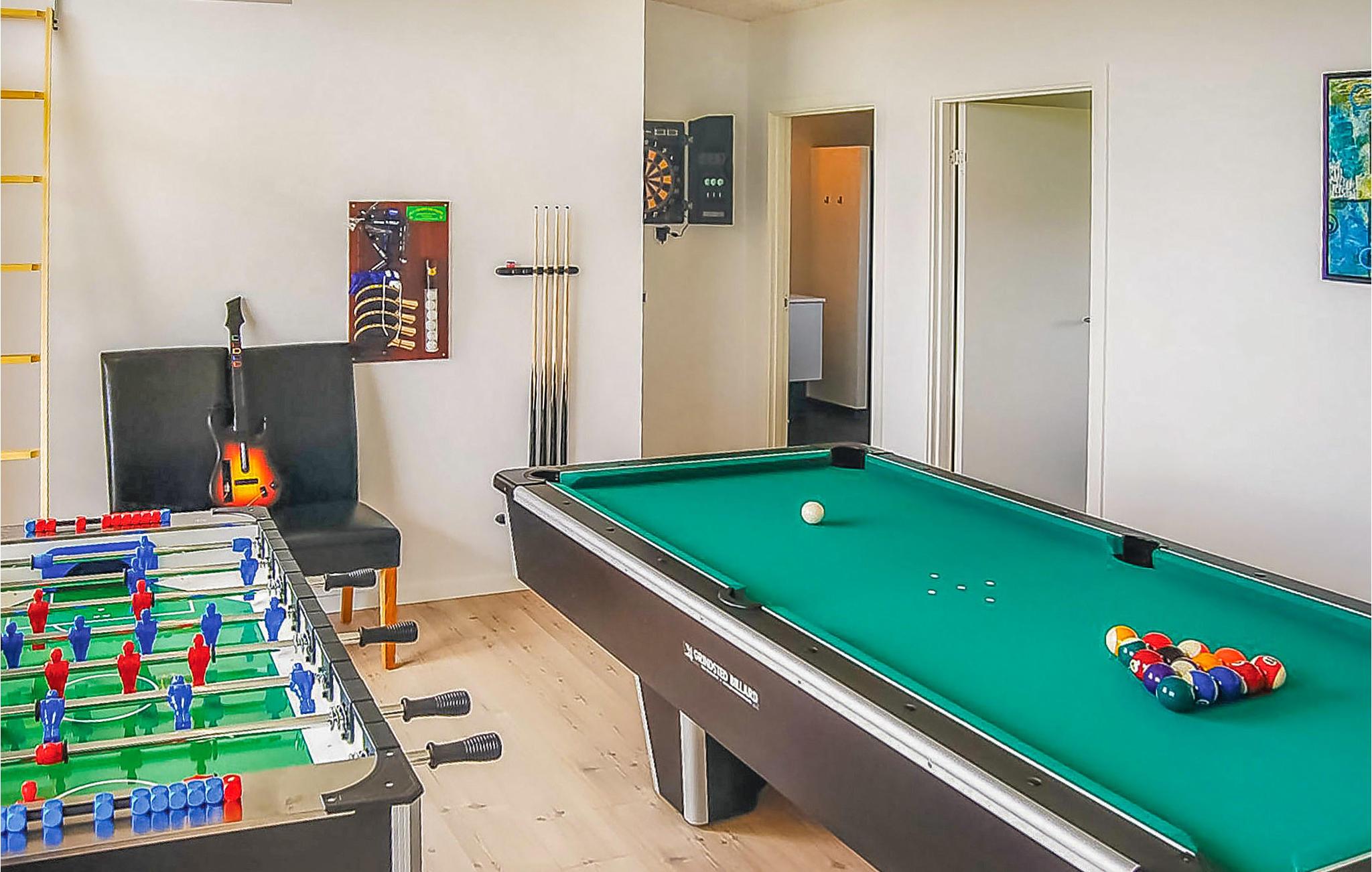 Føl dig hjemme med dine kære i dette komfortable hus på ethvert tidspunkt af året. Store vinduespartier sikrer masser af dagslys i rummene og lader dig opleve naturens nærhed optimalt. Billard og bordtennis inviterer til sprudlende familiedueller. Efter en lang gåtur på stranden kan du slappe af i hotellets sauna eller tage en dukkert i spabadet. Så kan du finde dig tilpas i den rummelige sofa, tænde ild i pejsen og snakke længe, ??mens flammerne knitrer.