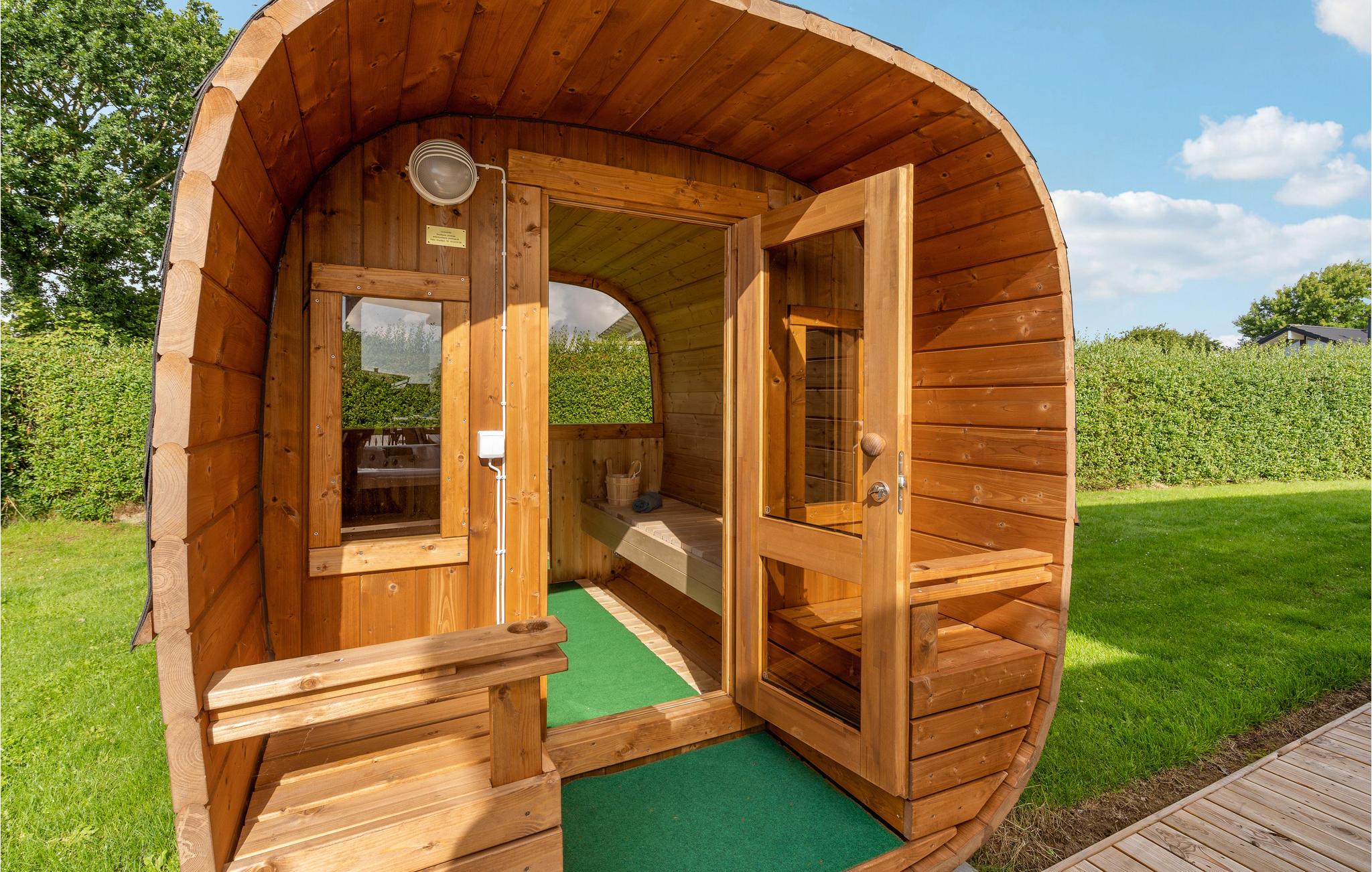 Feriehus med indendørs og udendørs wellness nær sandstrand i Haderslev for hele familien.