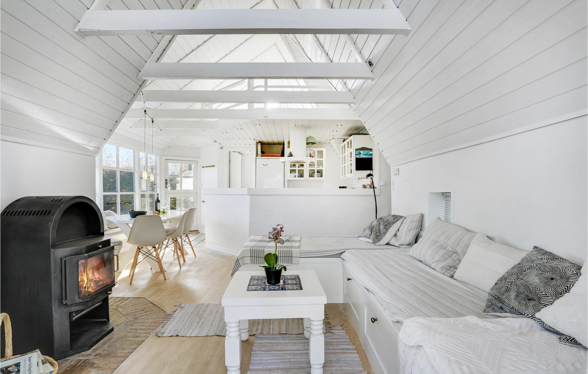 Dette charmerende sommerhus er opført i sten og tækket med strå. Huset ligger i de smukke omgivelser ved Sandersvig Stand. Indvendigt fremstår huset lyst og venligt, og i dele af huset er der loft til kip med fritlagte spær. Huset emmer af traditionel sommerhusstemning, både i valget af interiør og stilen huset er renoveret i. Huset indeholder et lille køkken, som er adskilt med en halvmur ind mod stuen. I stuen er der spiseplads, sofaarrangement, brændeovn og tv. Huset indeholder to soveværelser, det ene med en dobbeltseng og det andet med en etageseng. Husets terrasse ligger godt placeret på den hyggelige grund, hvorfra der er kig til vandet. Stranden ligger lige bag det næste hus, så det er nemt at komme frem og tilbage efter en tur i vandet.