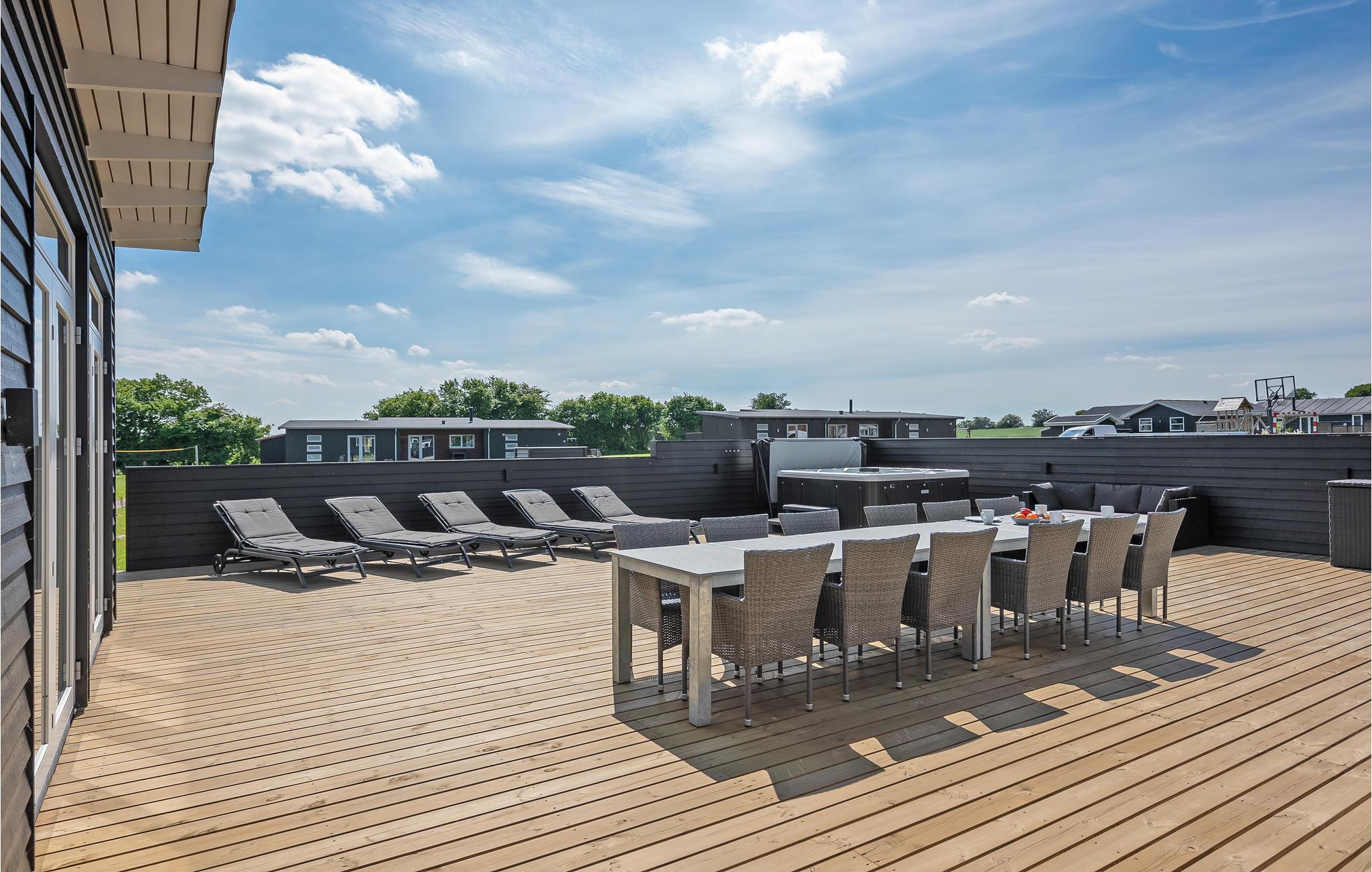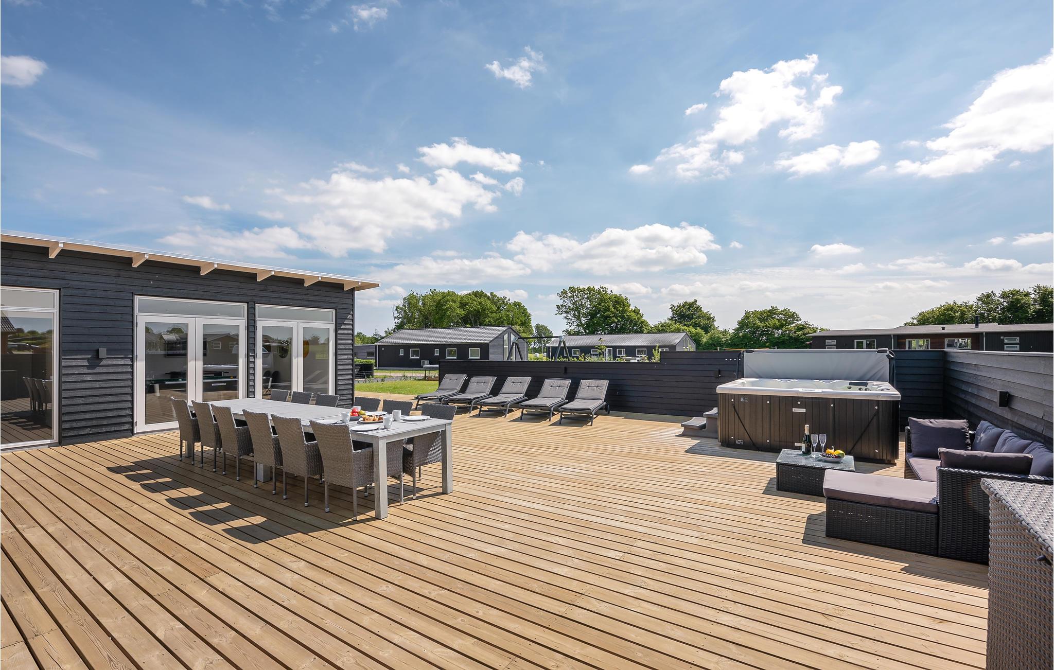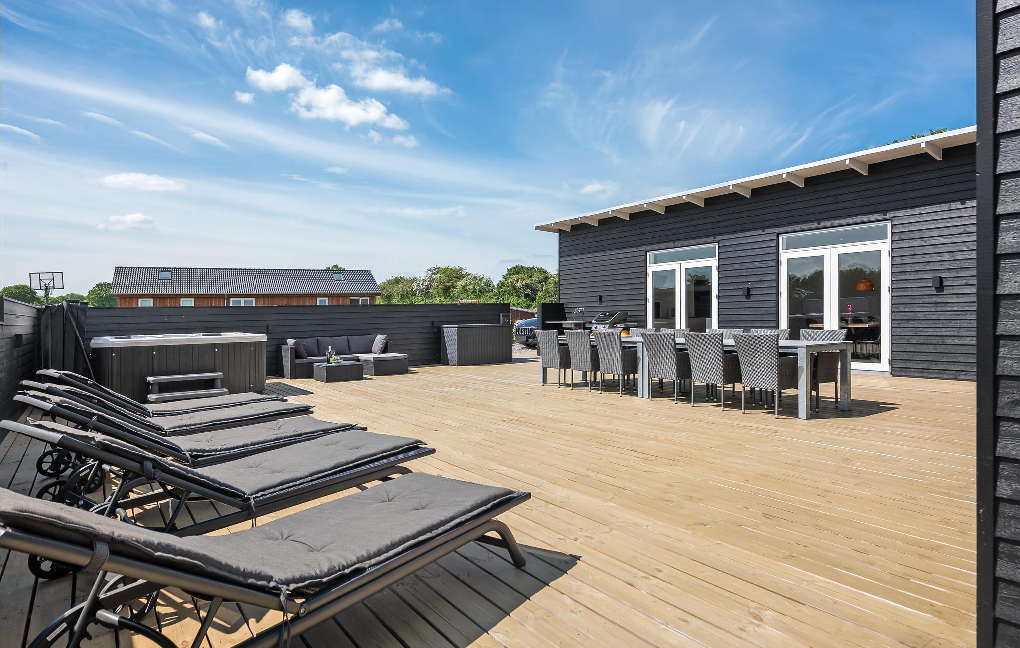 På den store terrasse finder I det lækre udespa, der kan bruge året rundt. Der er brugt gode byggematerialer, og huset er indrettet med komfortable møbler. Nyd ferien og måltiderne på den store terrasse med havemøbler og liggestole.