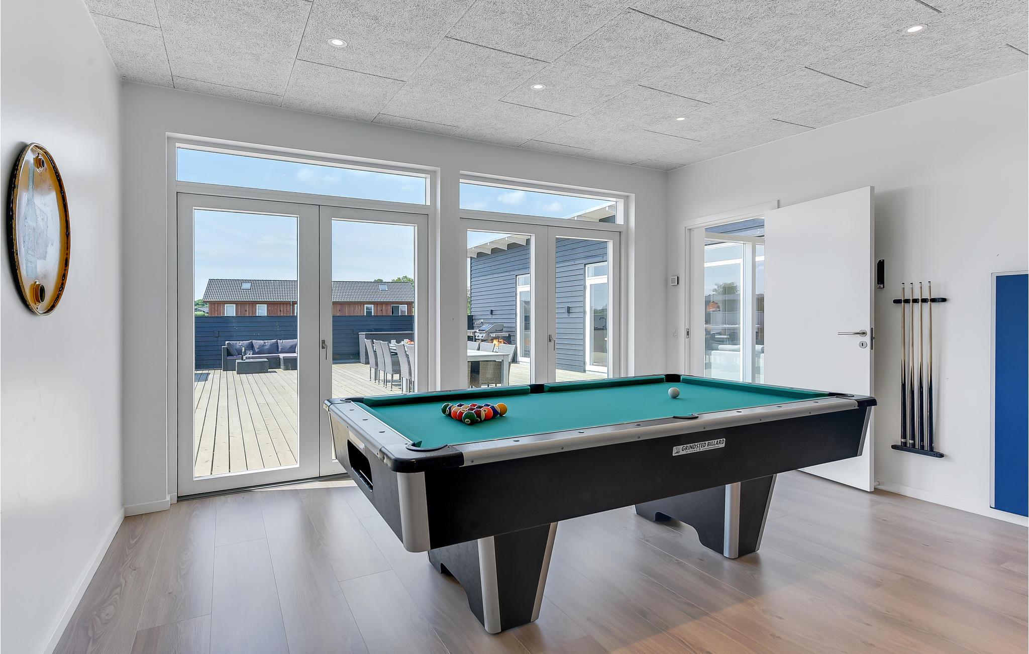 Skønt sommerhus med mange aktivitetsmuligheder. Huset ligger i et nyere sommerhusområde ved det dejlige område Sandersvig strand, der med sin skønne natur indbyder jer til en dejlig ferie. Huset er lyst indrettet med fem gode soveværelser. I det store aktivitetsrum kan I få mange timer til at gå med bl.a. bordtennis, bordfodbold og billard. Endvidere findes her en indbydende og rummelig opholdsstue i åben forbindelse med køkkenet og spisepladsen, så I kan hygge jer sammen. Hertil kommer to flotte badeværelser, det ene med ultraviolet sauna, som er særdeles effektiv mod ømme muskler.