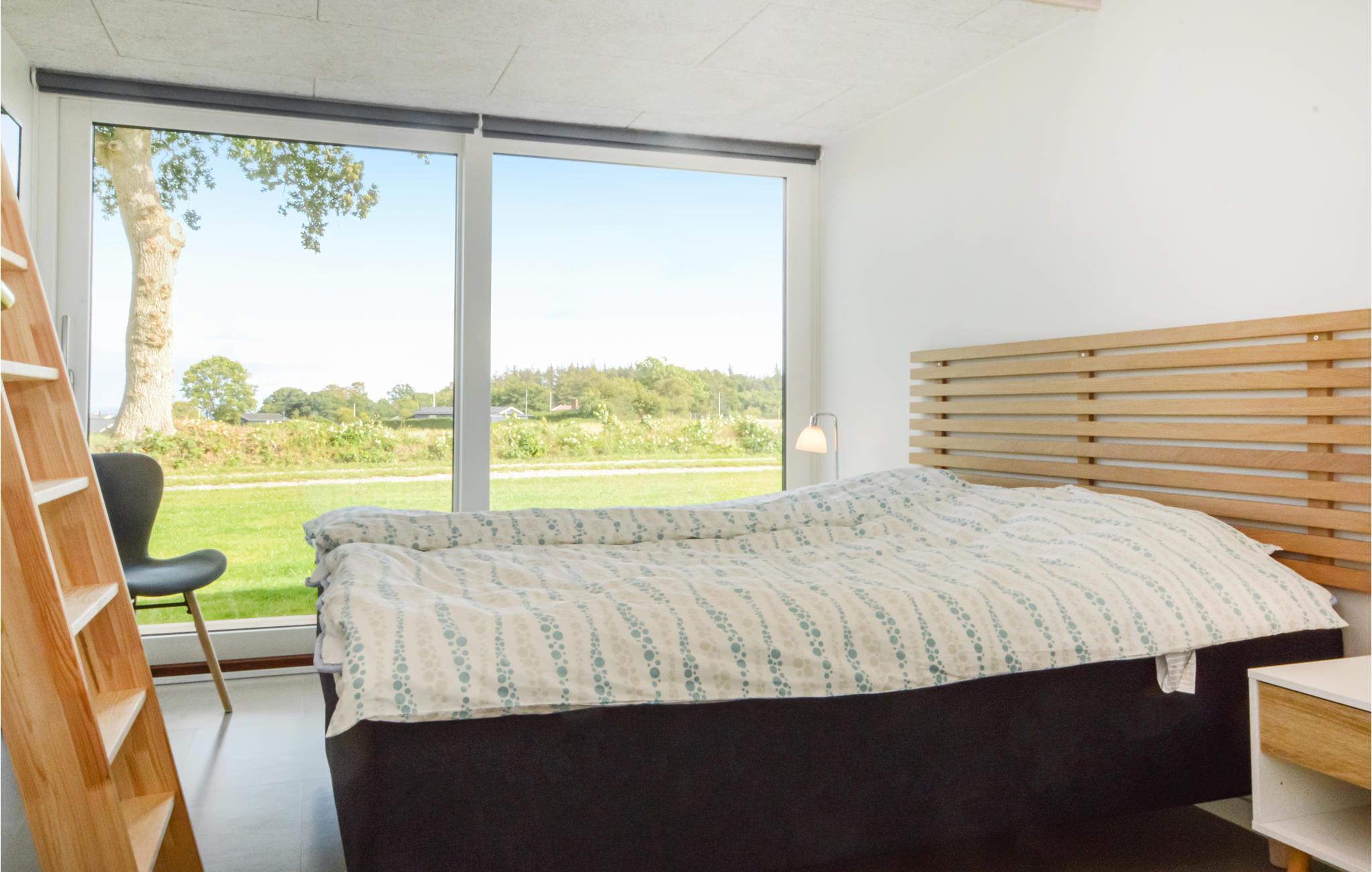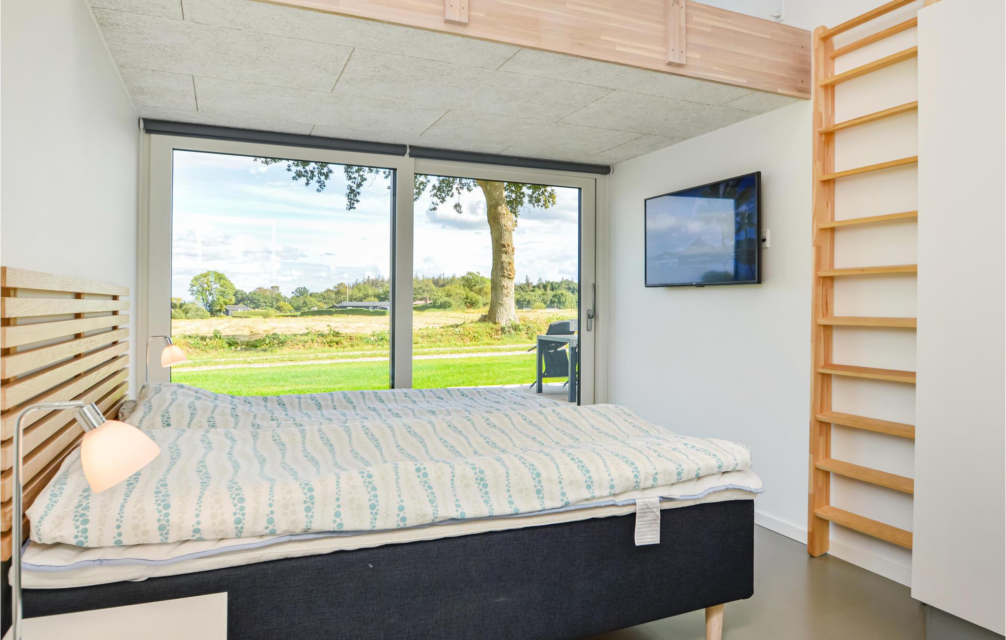 Huset er yderst velindrettet med en god rumfordeling, her er bl.a. afsat plads til indendørs aktiviteter som bordfodbold og PlayStation. Huset er perfekt indrettet til flere familier - med god plads til alle. Her findes 4 soveværelser, alle med gode dobbeltsenge. Værelserne er placeret i forskellige afdelinger af huset. På den store hems findes yderligere 2 gode sovepladser med udsigt til vand og krondyr i indhegning. Hele huset har gulvvarme og opvarmes af jordvarme, dermed billige varmeomkostninger.