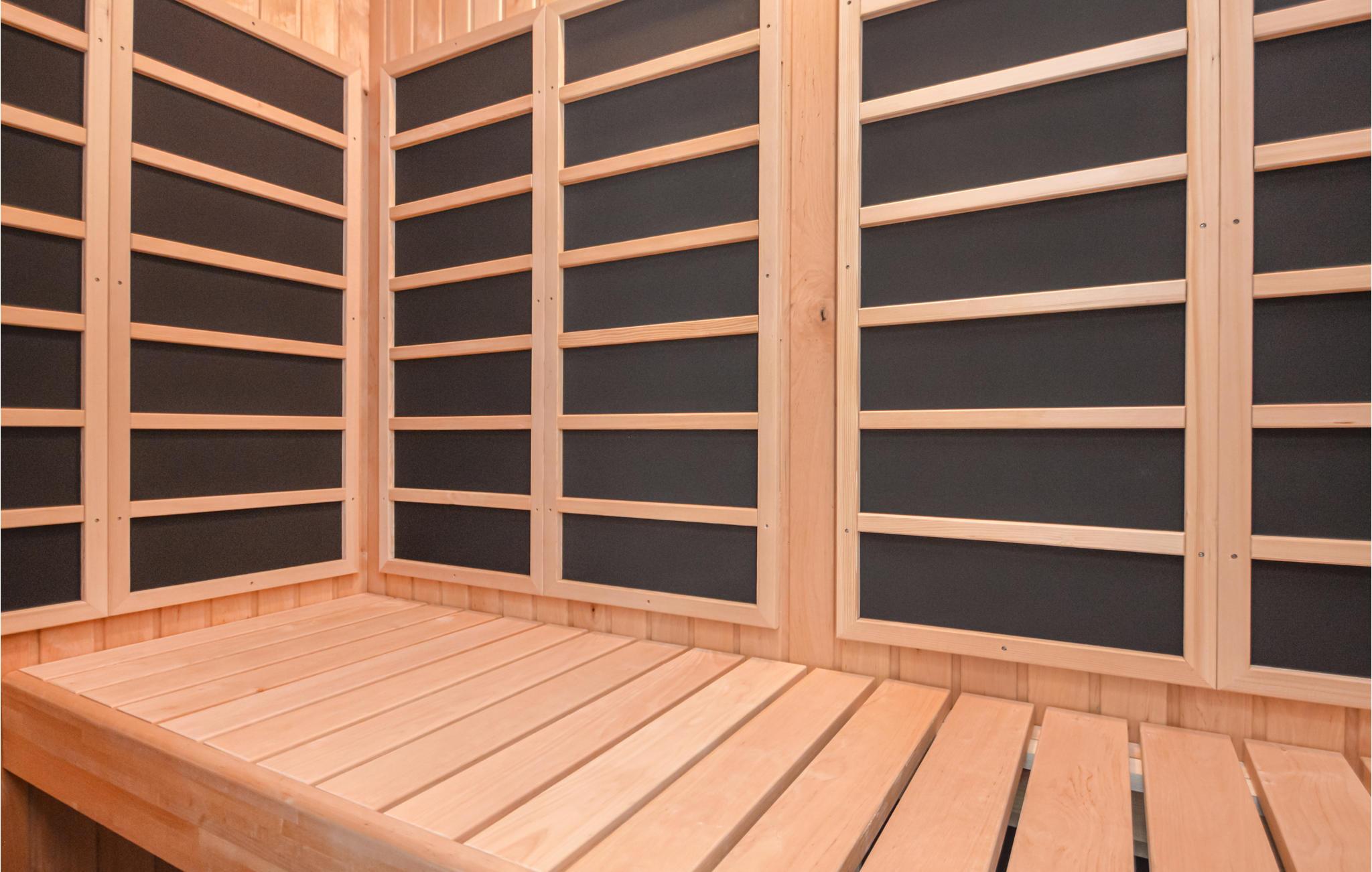 Endvidere er der 2 flotte badeværelser, med henholdsvis spabad og infrarødsauna til de ømme muskler, og selvfølgelig er der både vaskemaskine og tørretumbler, så I behøver ikke at tage alt for meget ekstra tøj med på ferien. Udendørs er der gode terrasser rundt om huset, hvor solen og udsigten kan nydes, ligesom I kan nyde et svalende bad under udebruseren, efter at have været aktiv i de forskellige udendørsaktiviteter huset også byder på.