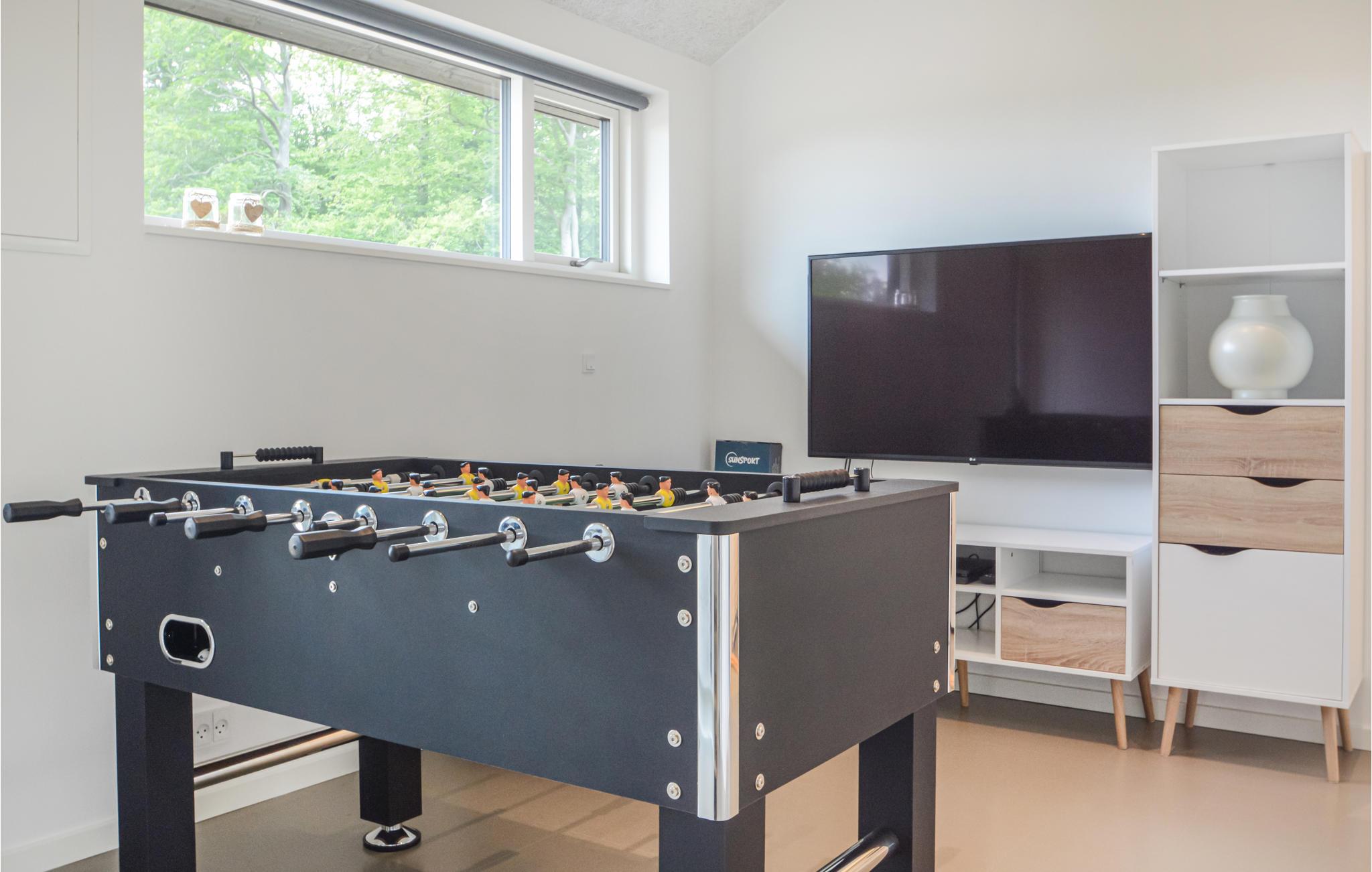 Lækkert sommerhus fra 2020 med havudsigt, bordfodbold, spabad og infrarød sauna nær børnevenlig sandstrand.