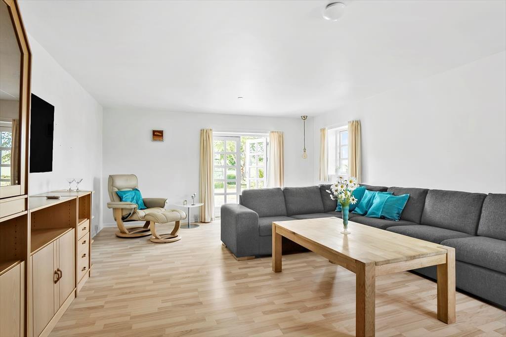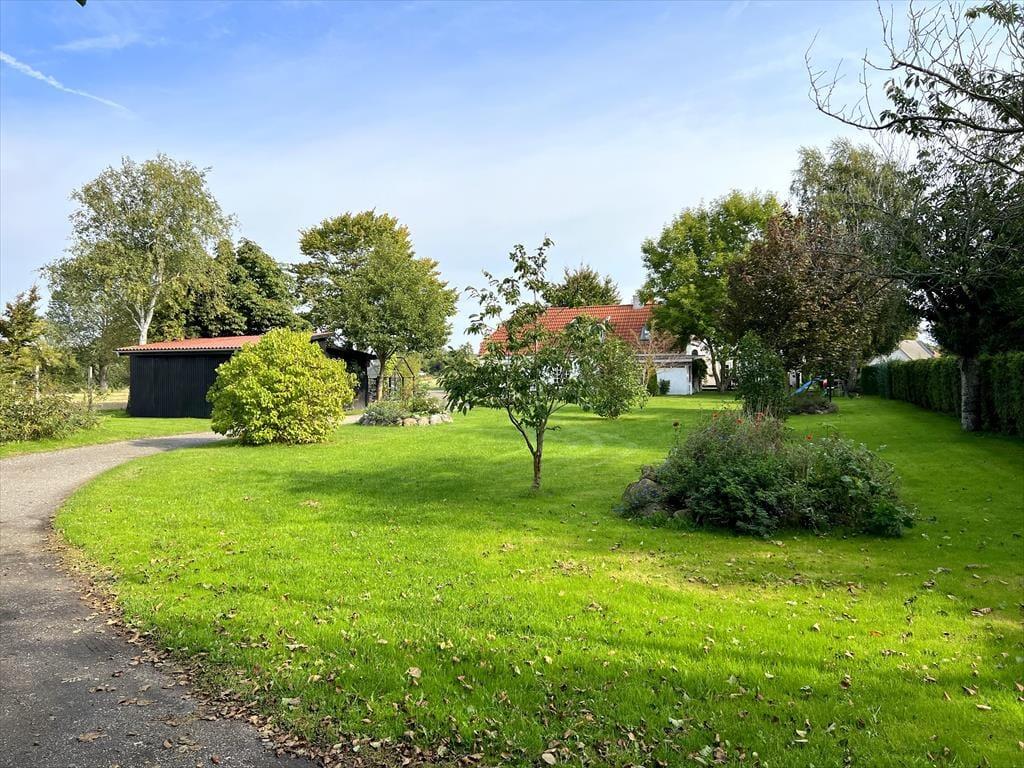 Ejendommen ligger på en stor grund ud til åbne marker og med kirken som nærmeste nabo. I haven er der anlagt en lille sø, hvor der også er en terrasse. Oplagt til et glas vin i solskin, mens grillen gøres klar. Herudover er der rig mulighed for både sol, skygge og læ på den 200 m2 store terrasse, med havemøbler, liggestole og naturligvis en grill.