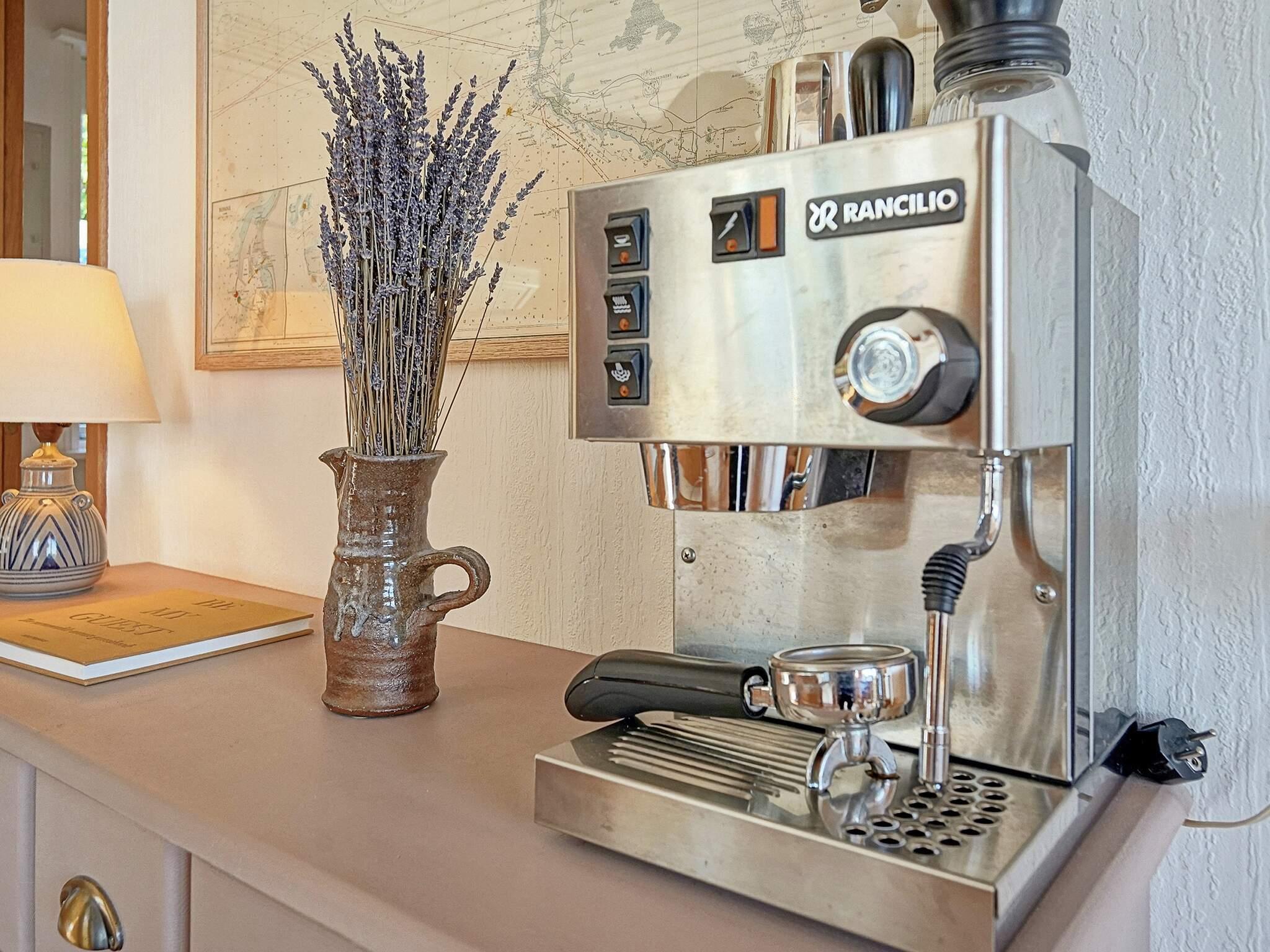 Køkken: Køle-frys, induktionskomfur, kaffemaskine