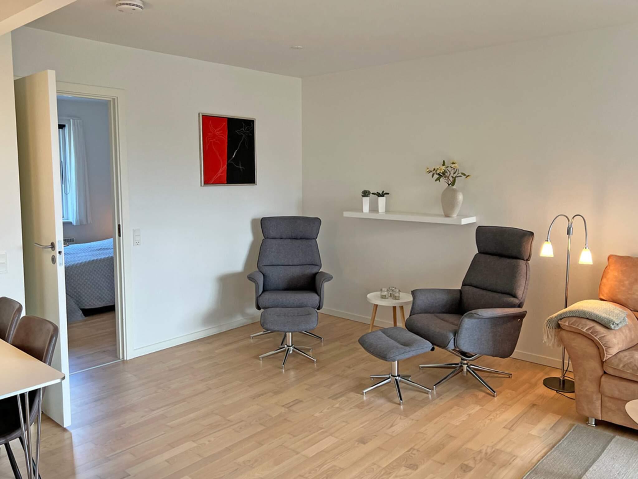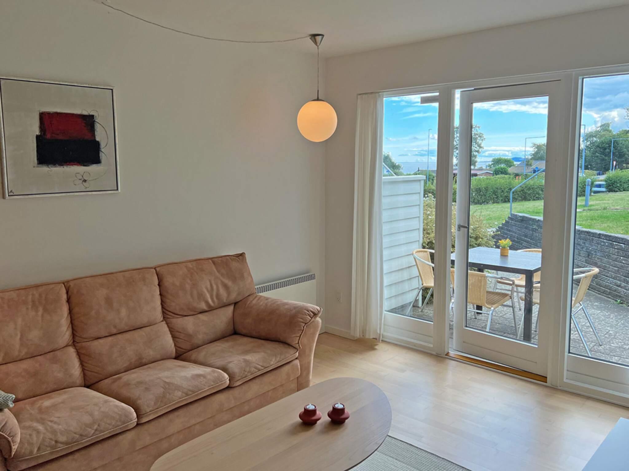 Flot og lys ferielejlighed for 2-4 personer. Lejligheden er indrettet med et opholdsrum bestående af køkken, stue med sofa og to sofastole samt TV. Fra stuen er der indgang til separat soveværelse med dobbeltseng og indgang til badeværelse med bruser, toilet og gulvvarme. Endvidere er der fra stuen udgang til egen terrasse med havemøbler. Køkkenet, som ligger i forbindelse med entre og stue, er veludstyret og indeholder blandt andet kaffemaskine, elkedel, opvaskemaskine, keramisk kogeplade, ovn og køleskab med frostbox. Der er spisebord og spisebordsstole til 4 personer.