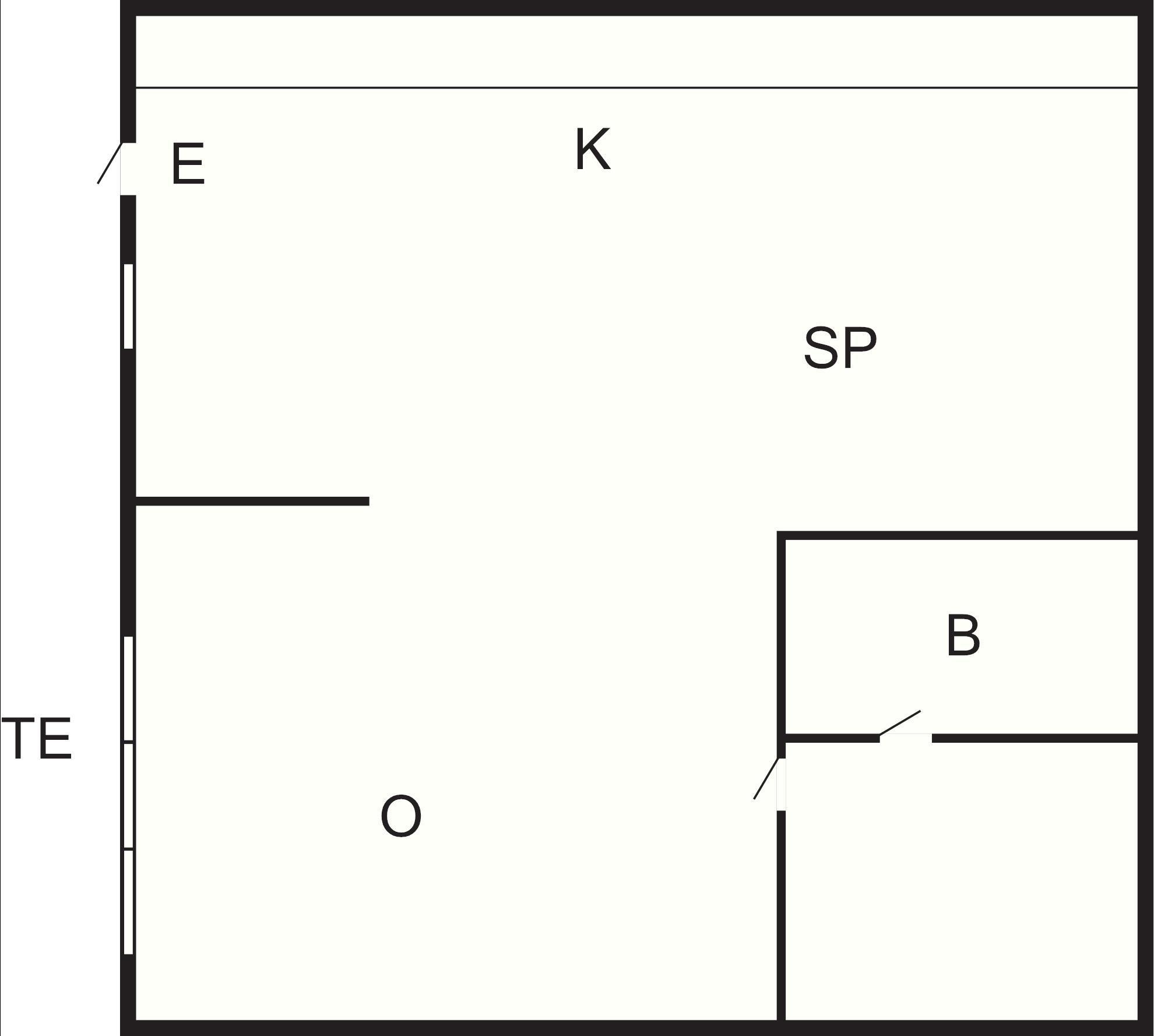 1 Opholdsstue: (1DO), tv, elkogepl., ovn, køleskab m/frostboks, kaffemaskine, opvaskemask.