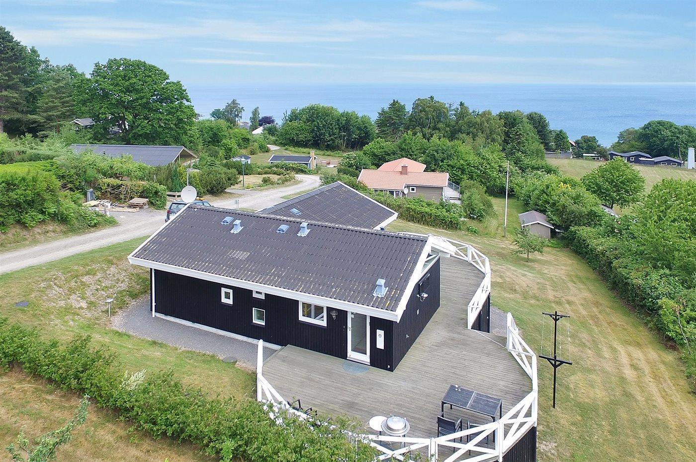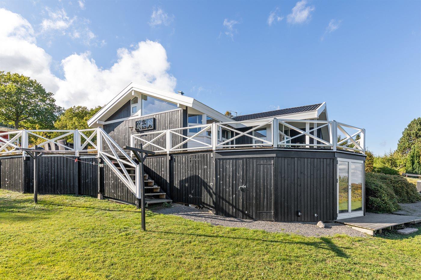 Smagfuldt indrettet sommerhus, bygget i kvalitetsmaterialer, og med en enestående beliggenhed samt en virkelig flot panoramaudsigt over Østersøen. Fra den store terrasse som er hævet ca. 2,5 m over niveau samt fra opholdsstuen og køkkenet er der en uspoleret udsigt til havet. Til huset hører et anneks, som er indrettet med 2 af de i alt 10 sovepladser.