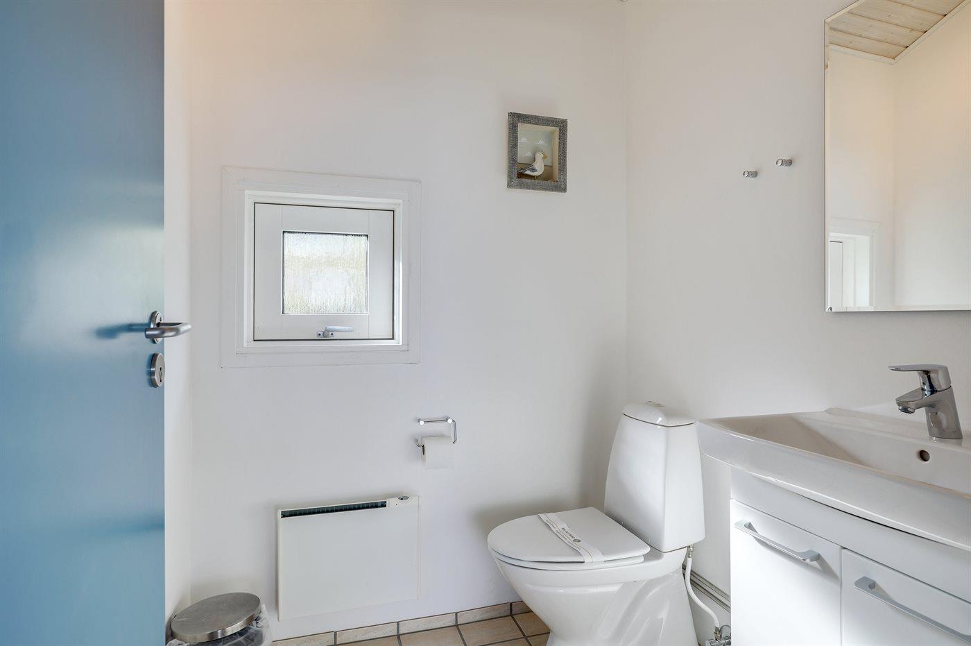 Der er 1 badeværelse med bruseniche og 2 toiletter, heraf 1 gæstetoilet. Der er gulvvarme på 1 badeværelse. Der er gulvvarme på gæstetoilettet.