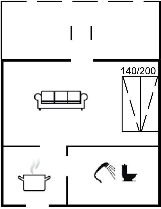 Sovepladserne fordeler sig på: 2 sovepladser i sovesofa (dobbelt). Disse sovepladser befinder sig i stuen.