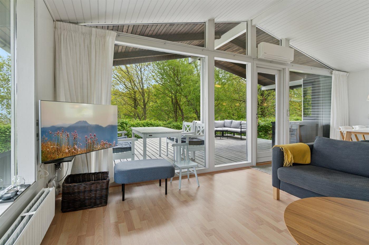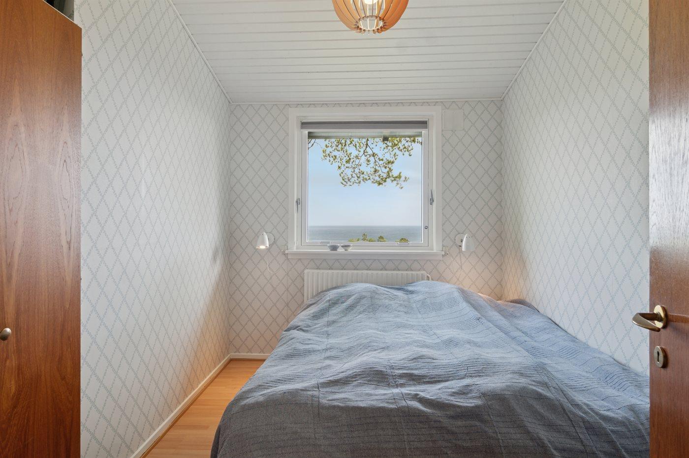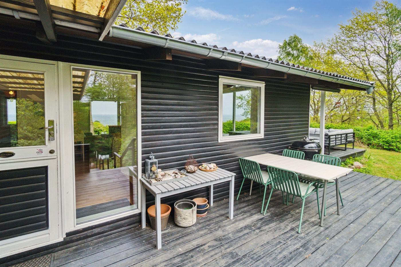 Højt beliggende for enden af Brunekulvej finder man dette herlige sommerhus, hvor der fra husets hævede træterrasse er en fantastisk panoramaudsigt ud over Sandkås og Østersøen. I det fjerne kan man se Christians Ø. I huset tillades hund - ikke andre kæledyr. Huset er ikke egnet for gangbesværede, da terrænnet skråner temmelig meget ved adgangstrappen.