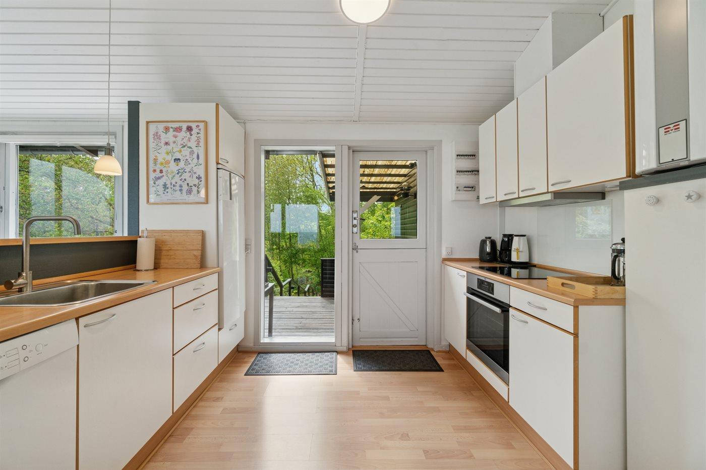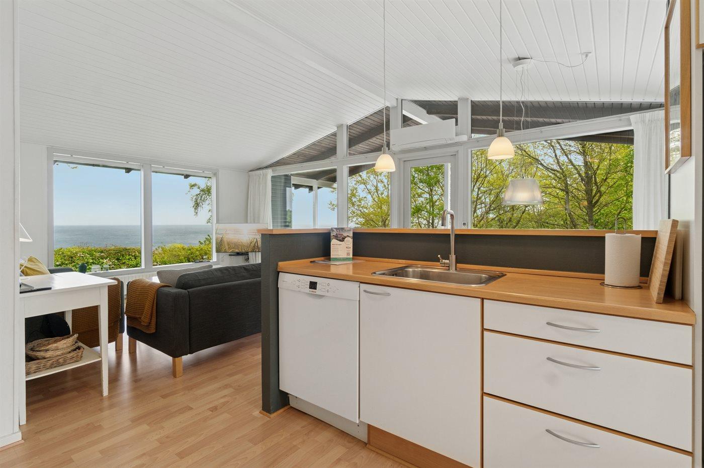 Køkkenet er udstyret med 1 køleskab. Der er 4 induktionskogeplader, varmluftovn samt opvaskemaskine.