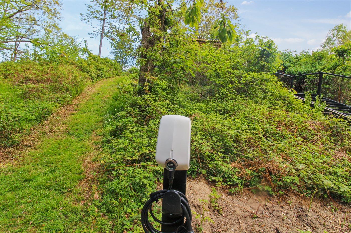 Ferieboligen er beliggende på en 2590 m² stor naturgrund. Der er 350 m til havet. Nærmeste forretning er beliggende i en afstand af 1500 m. Der er en golfbane i en afstand af 8100 m. Til ferieboligen hører 25 m² terrasseareal. Desuden er der 15 m² overdækket terrasse. Der er redskabsrum. Der er installeret stik til opladning af elbil. Type 2 stik. Parkering ved ferieboligen.