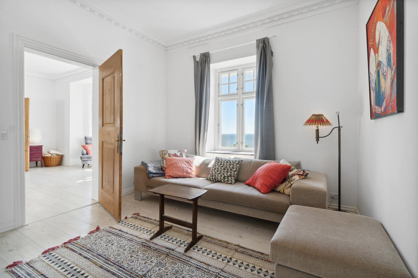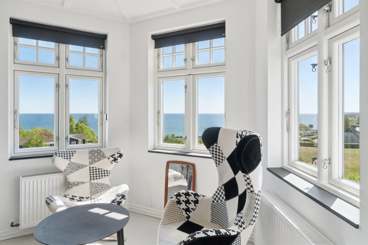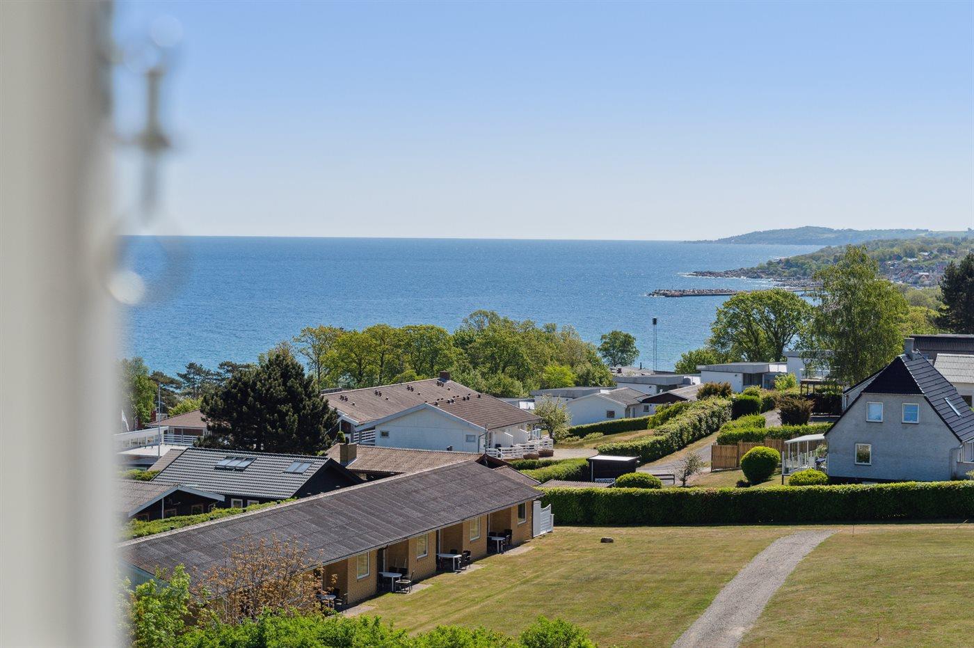 Fantastisk udsigt ud over Østersøen og det nordbornholmske, flotte kuperede landskab i Sandkås får man fra den store terrasse ved dette hus. Ønsker man lidt mere fred og ro, så kan gårdterrassen benyttes. Huset ligger sammen med andre lejligheder i det lille feriekompleks Kilden, der nok er fra 1919, men efter en smagfuld renovering fremstår huset i dag fuldstændig moderne og velfungerende.
