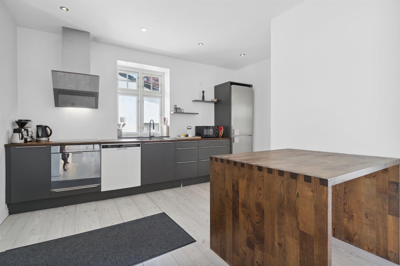 Køkkenet er udstyret med 1 køleskab. Der er 4 keramiske kogeplader, varmluftovn, mikrobølgeovn samt opvaskemaskine.