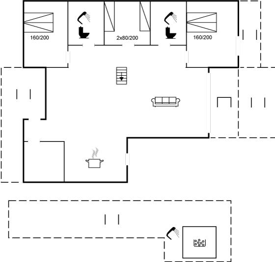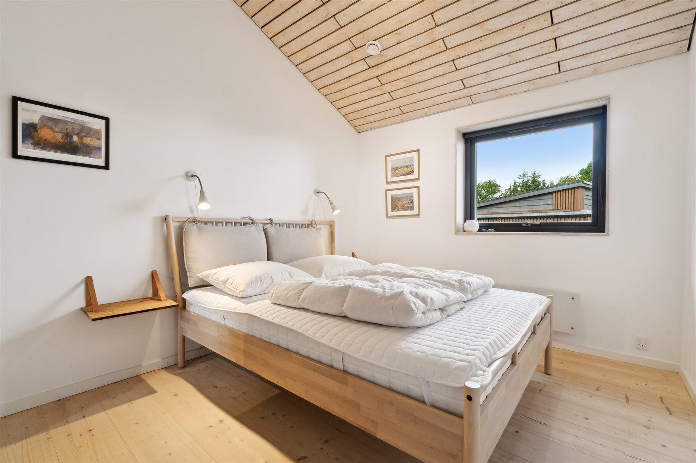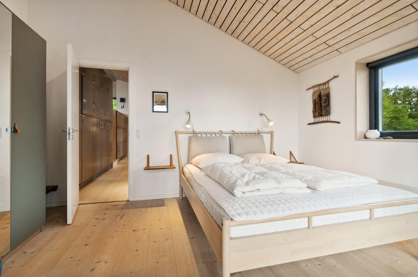 Der er 2 værelser med dobbeltsenge og 1 værelse med 2 enkeltsenge. Der er 2 badeværelser med klinkegulve og gulvvarme.