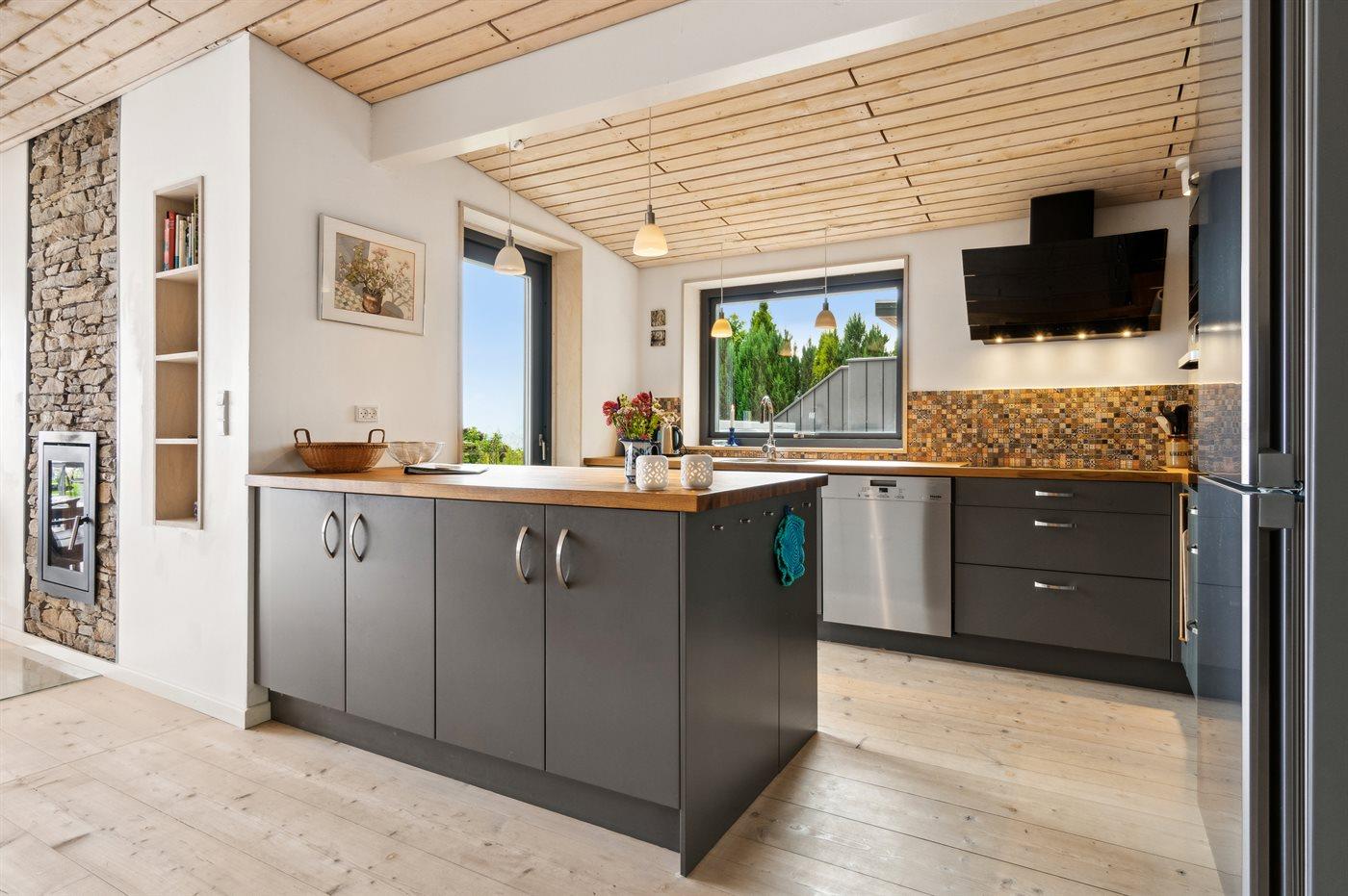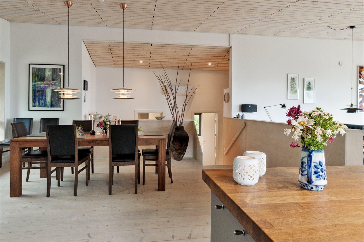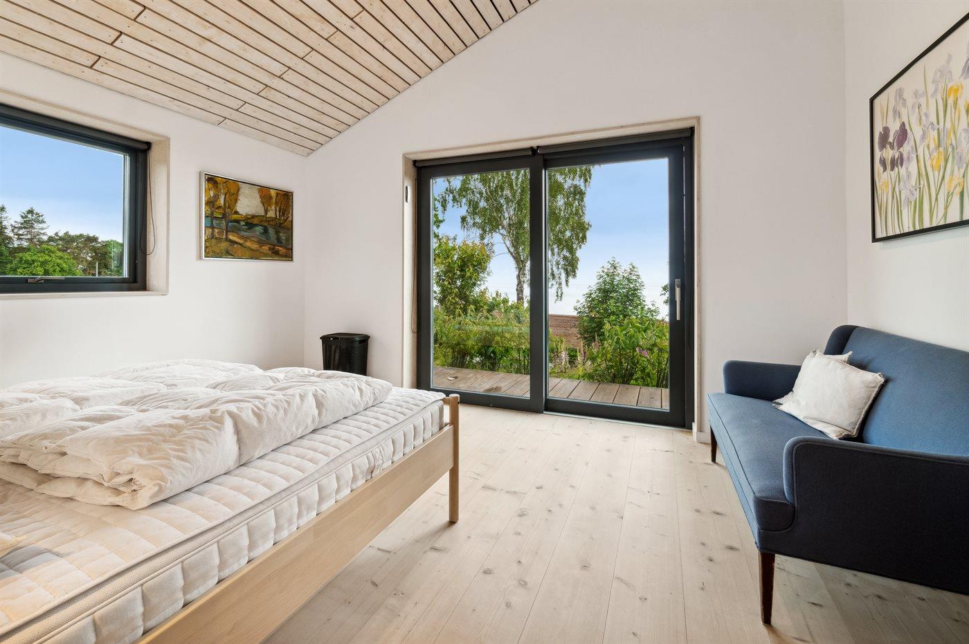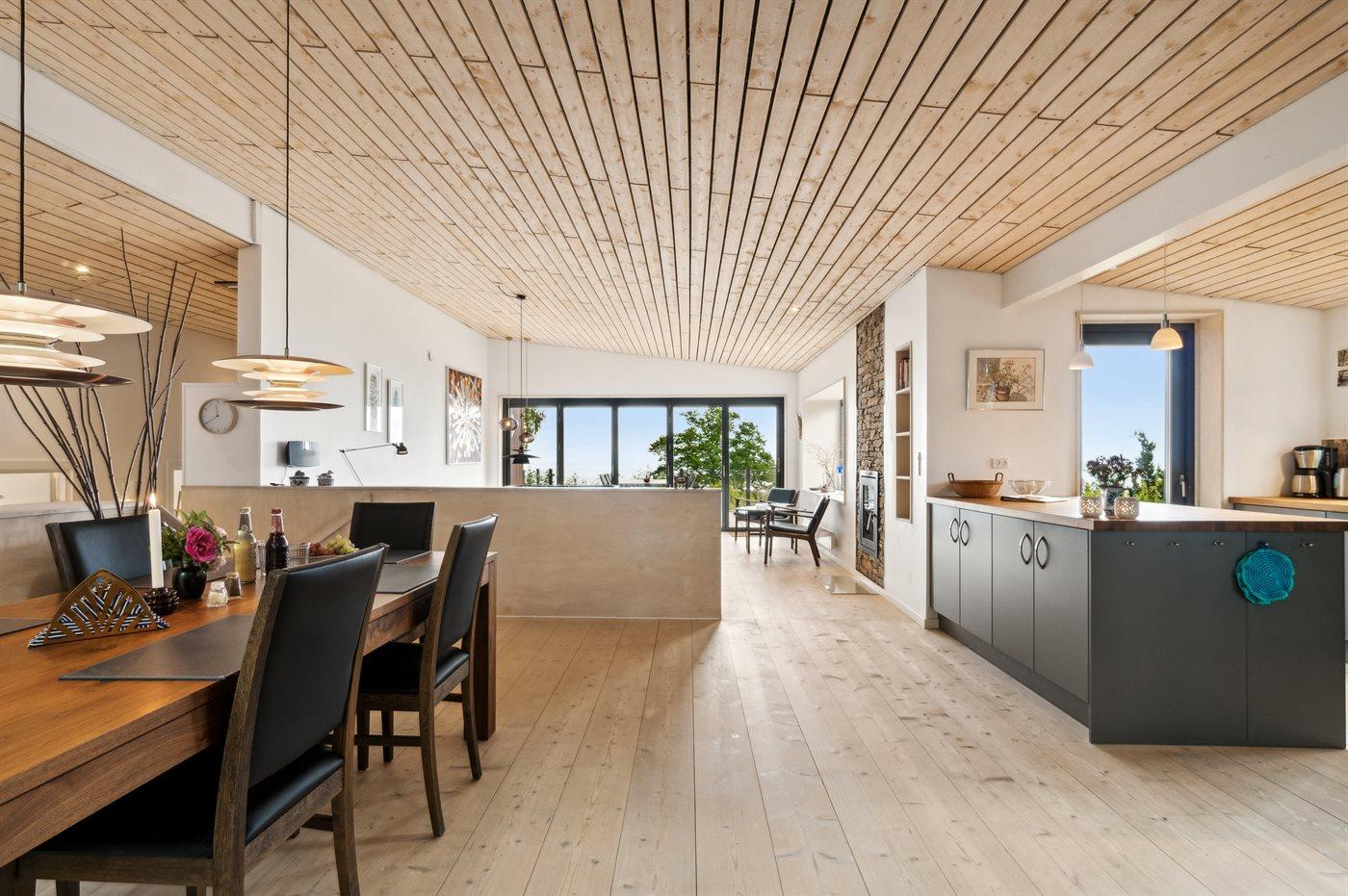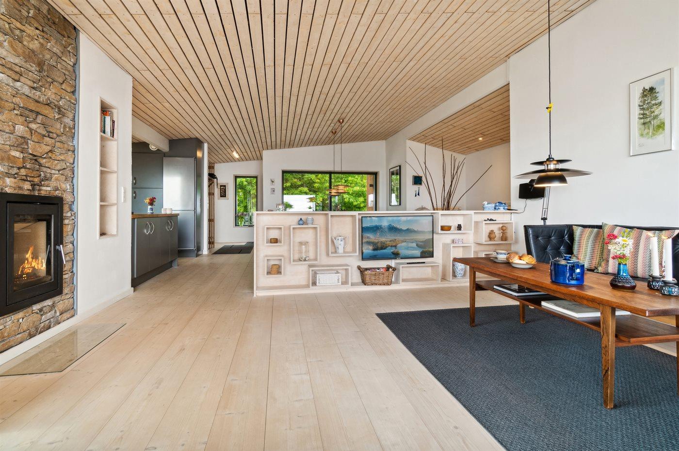 Mod havet kan man åbne et stort glasparti og stuen og den store terrasse skaber et skønt leverum.
