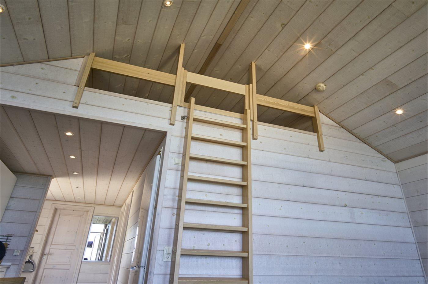 Der er i alt 2 soveværelser. Sovepladserne fordeler sig på: 4 sovepladser i dobbeltsenge. 2 sovepladser på madrasser. 2 af disse sovepladser befinder sig på husets hems.