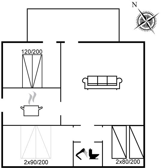 Der er i alt 3 soveværelser. Sovepladserne fordeler sig på: 2 sovepladser i dobbeltseng. 4 sovepladser i enkeltsenge.