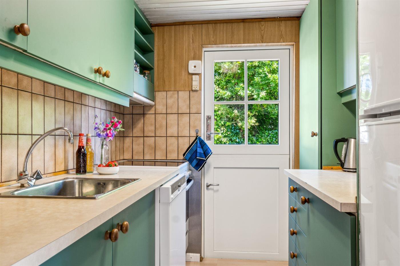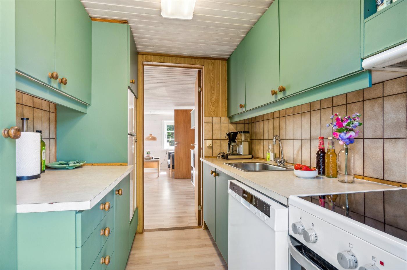 Huset er fornuftigt istandsat og fremstår indbydende. Køkkenafdelingen er en del af indgangspartiet, men er funktionel og velassorteret med, hvad der er brug for, når maden skal laves.